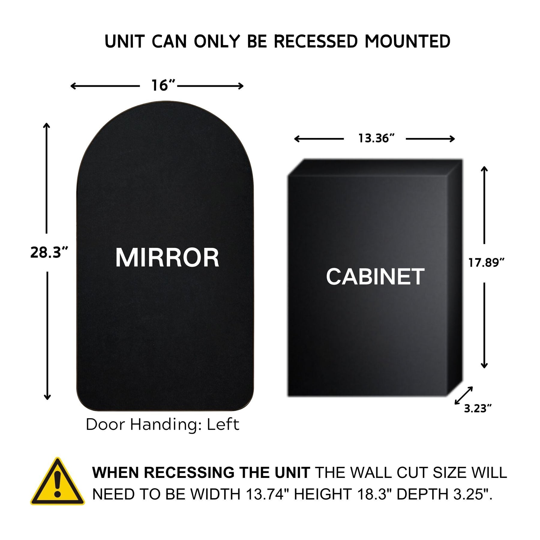 TEHOME 16-in x 28.3-in Recessed Mount Brushed Nickel Mirrored Arched Medicine Cabinet