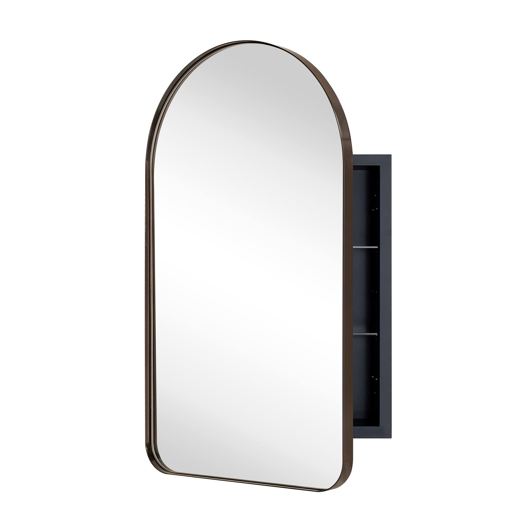 TEHOME 16-in x 28.3-in Recessed Mount Oil Rubbed Bronze Mirrored Arched Medicine Cabinet