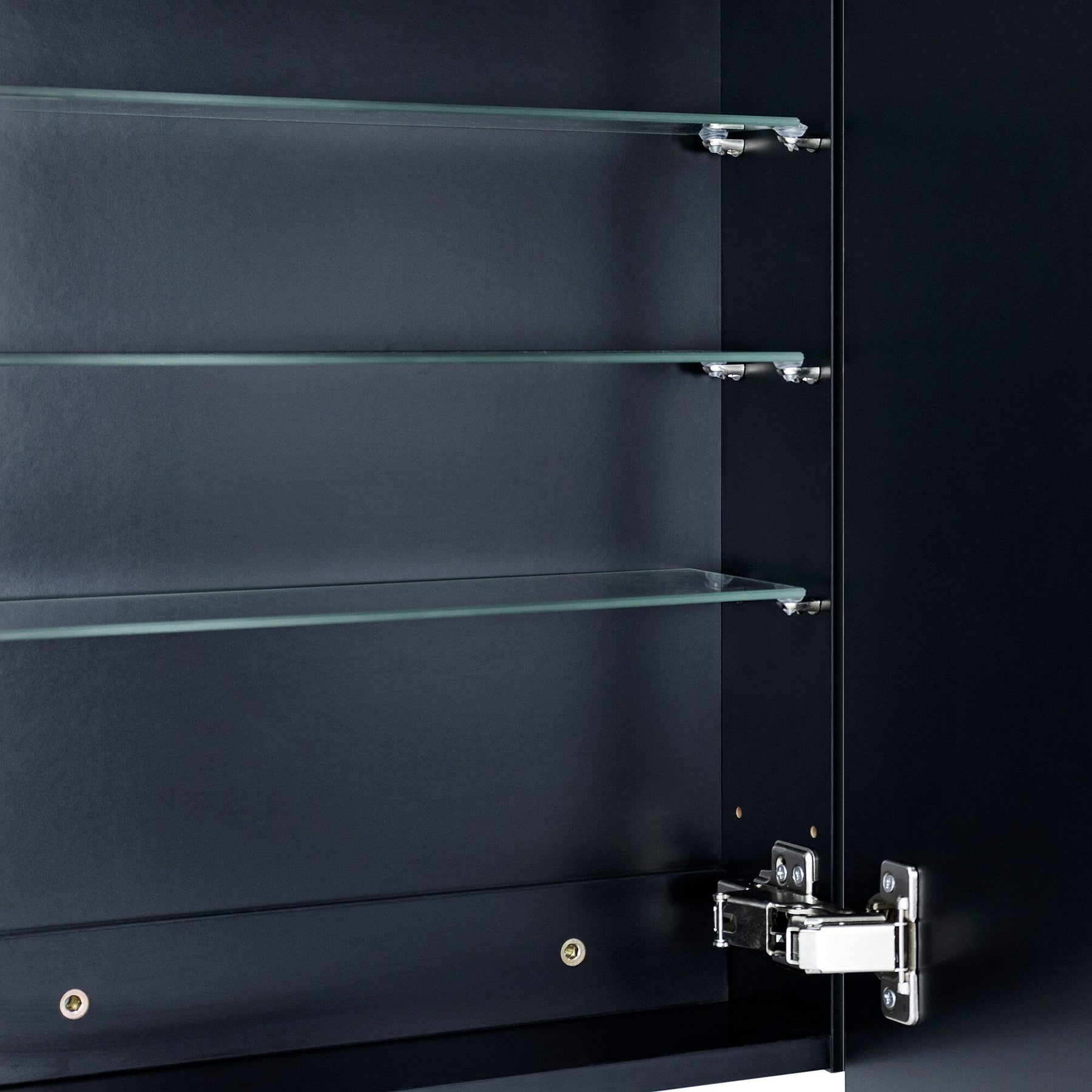 • Adjustable Tempered-Glass Shelves: Offers flexibility for storing toiletries securely, hardier than standard glass.