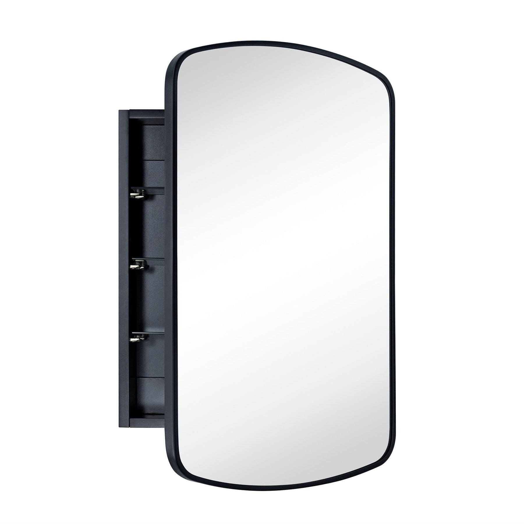 TEHOME 18-in x 27-in Surface/Recessed Mount Matt Black Mirrored Arched Soft Close Medicine Cabinet