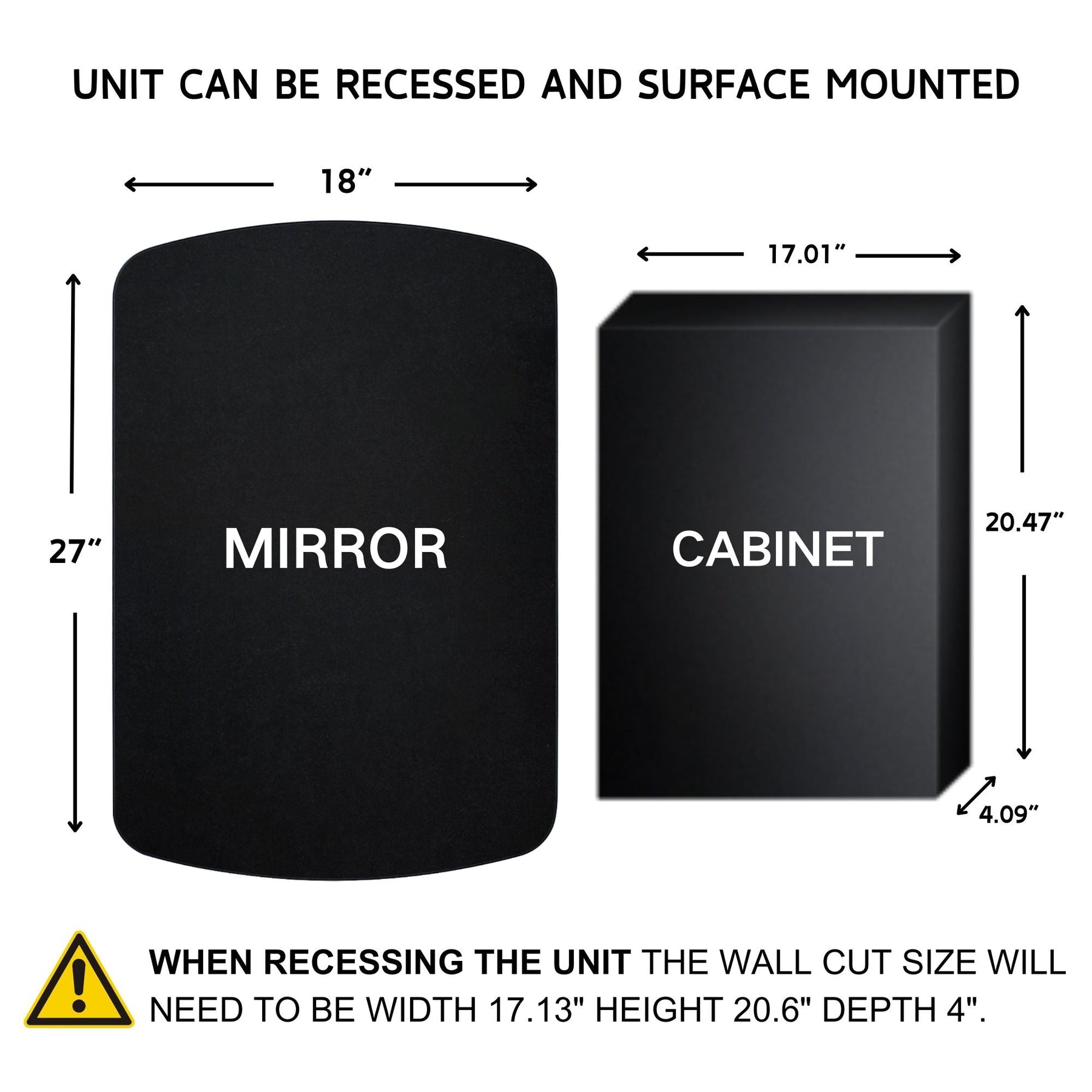 • Flexible Mounting: Choose between surface or recessed installation to suit your bathroom design needs.