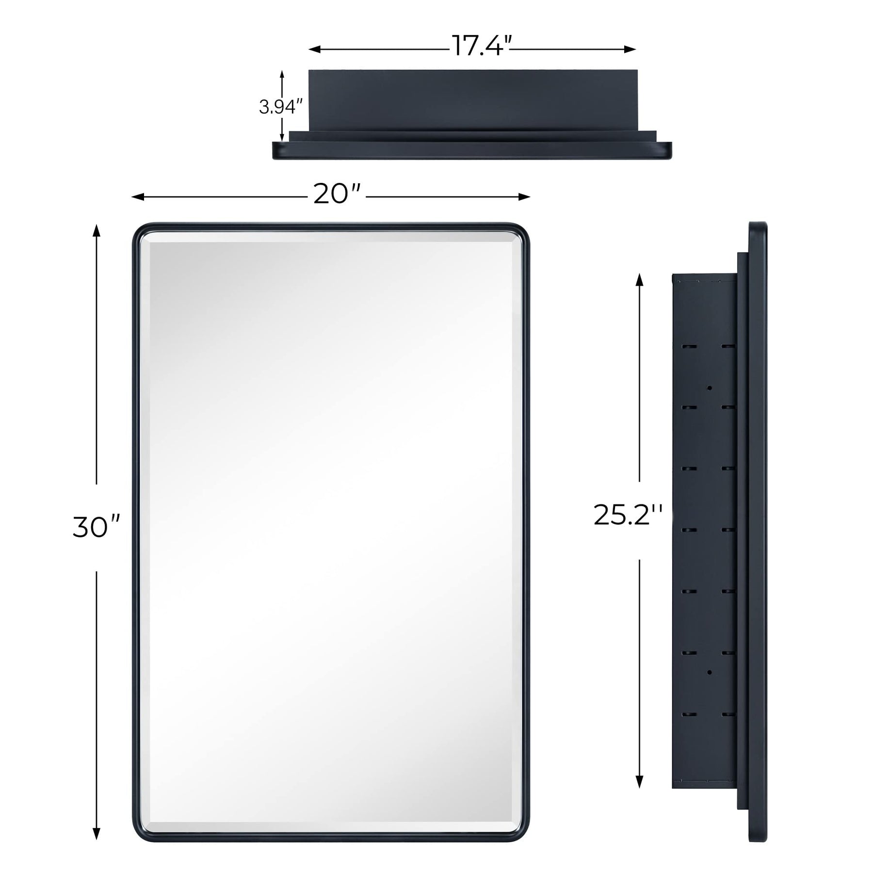 TEHOME 20-in x 30-in Recessed Mount Matt Black Mirrored Medicine Cabinet
