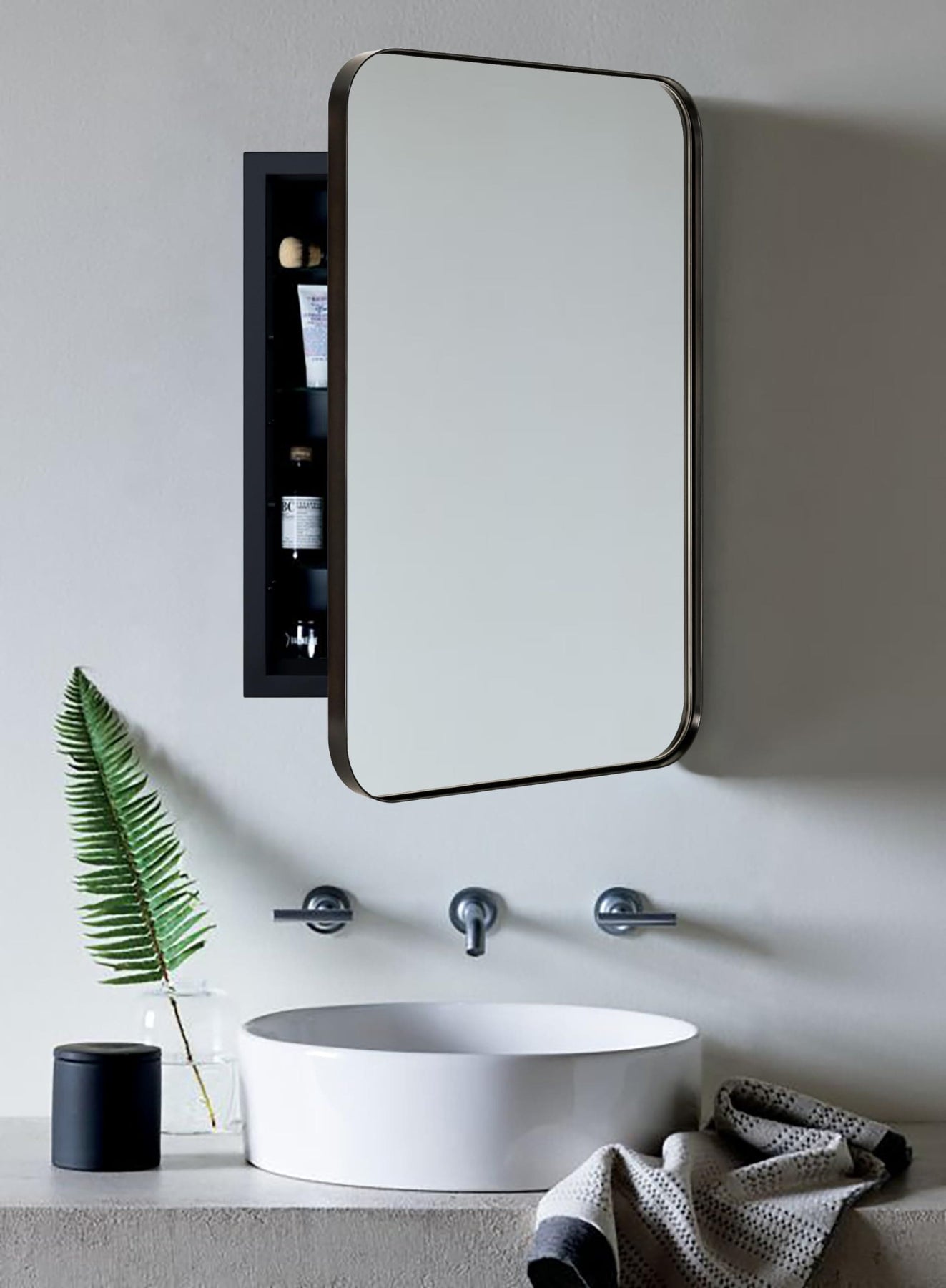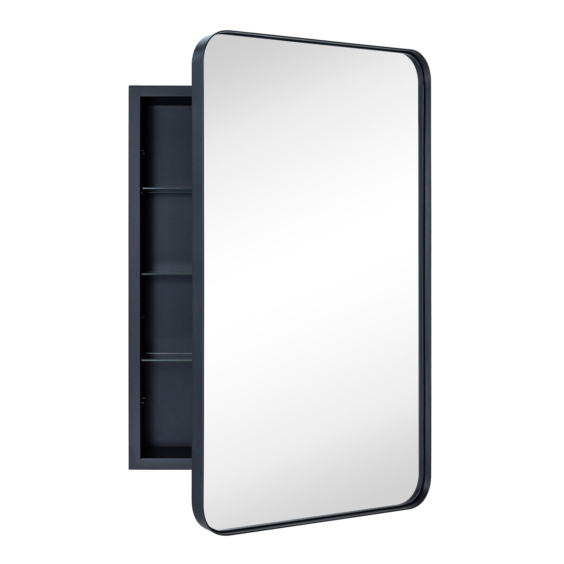 TEHOME 20-in x 30-in Recessed Mount Matte Black Mirrored Medicine Cabinet