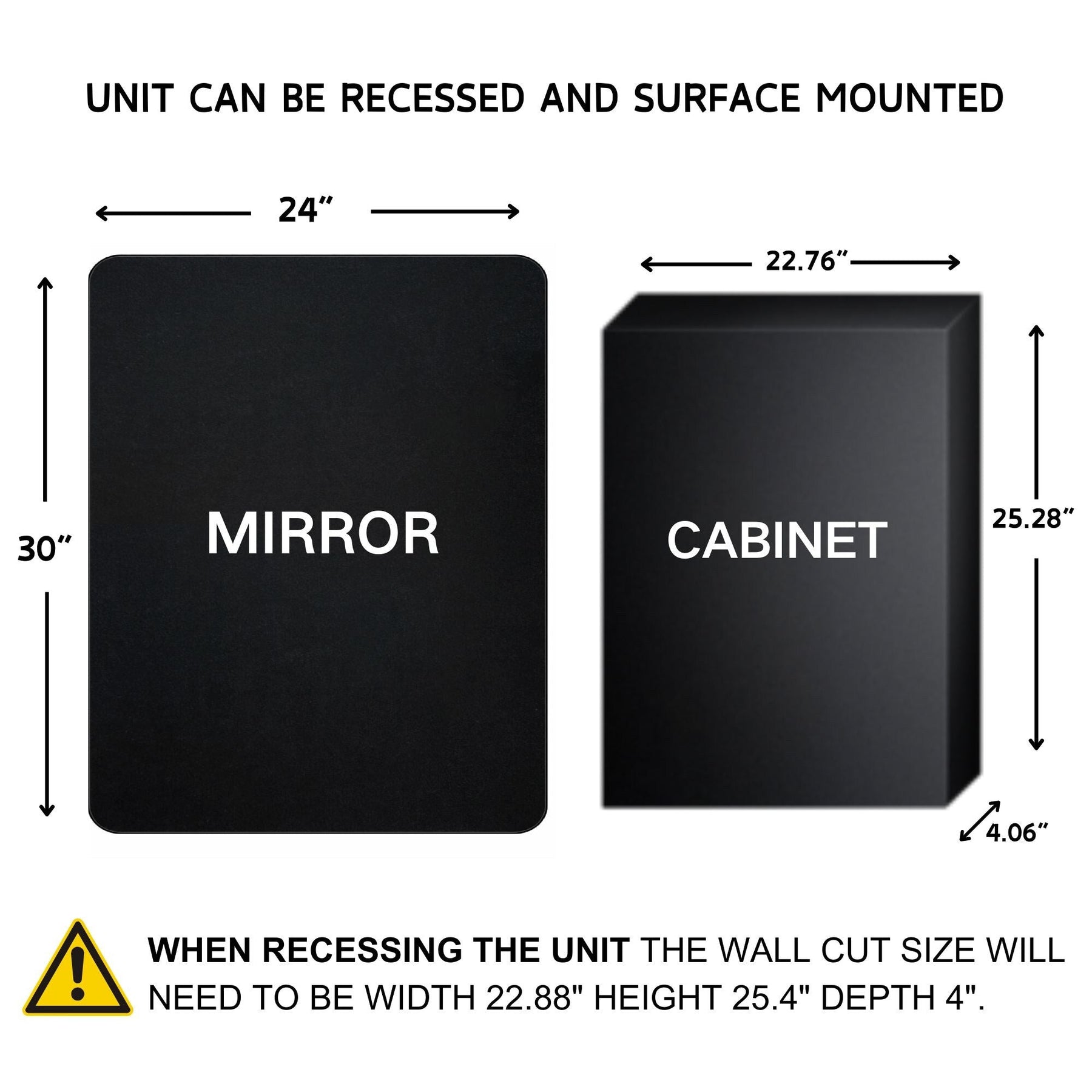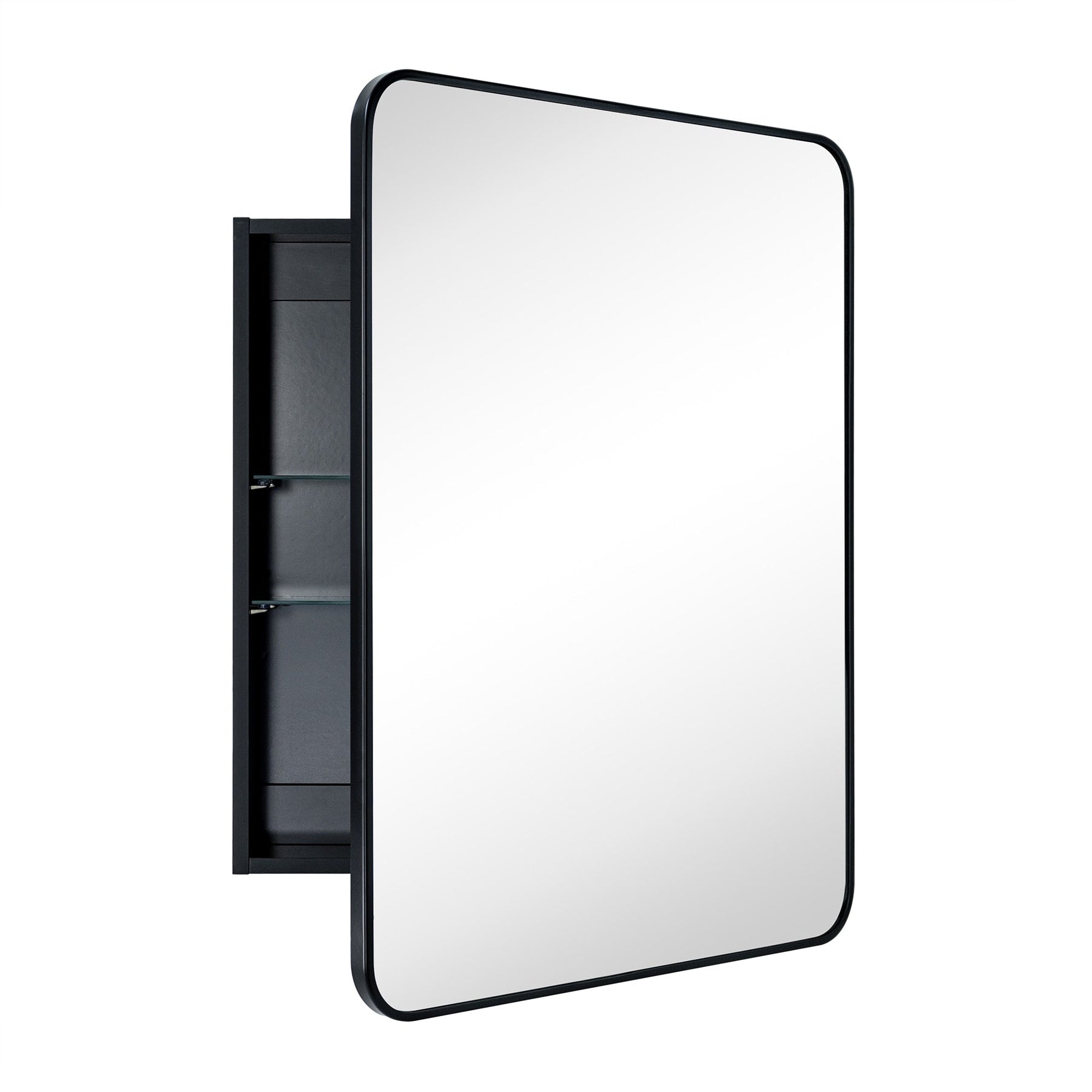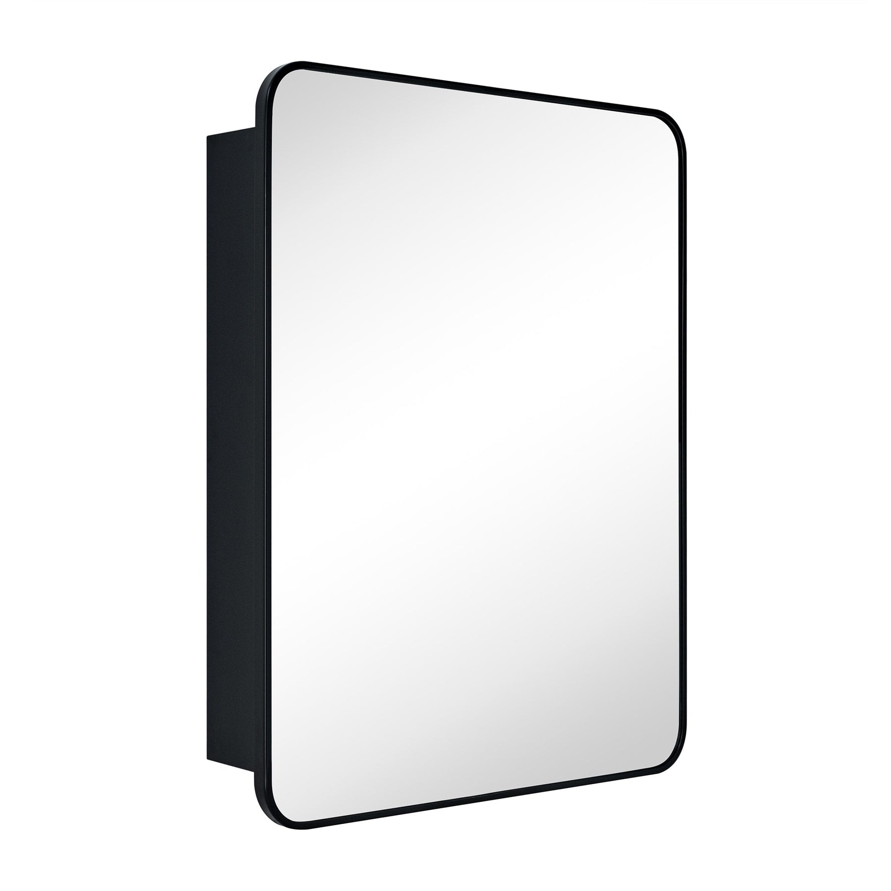 TEHOME 24-in x 30-in Surface/Recessed Mount Matt Black Mirrored Soft Close Medicine Cabinet