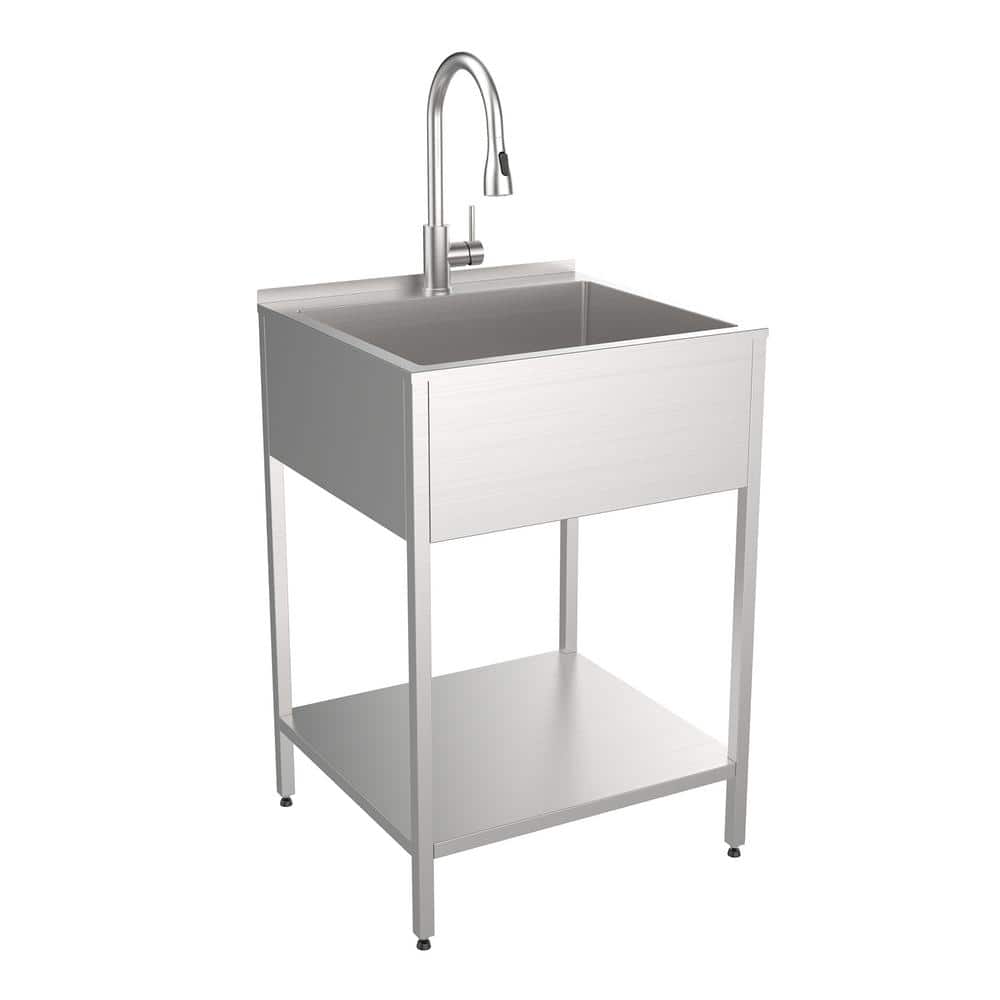 Transolid 15 Gal. 22.1 in. D x 24 in. W Freestanding Laundry Sink with Cabinet in Brushed Satin with Faucet