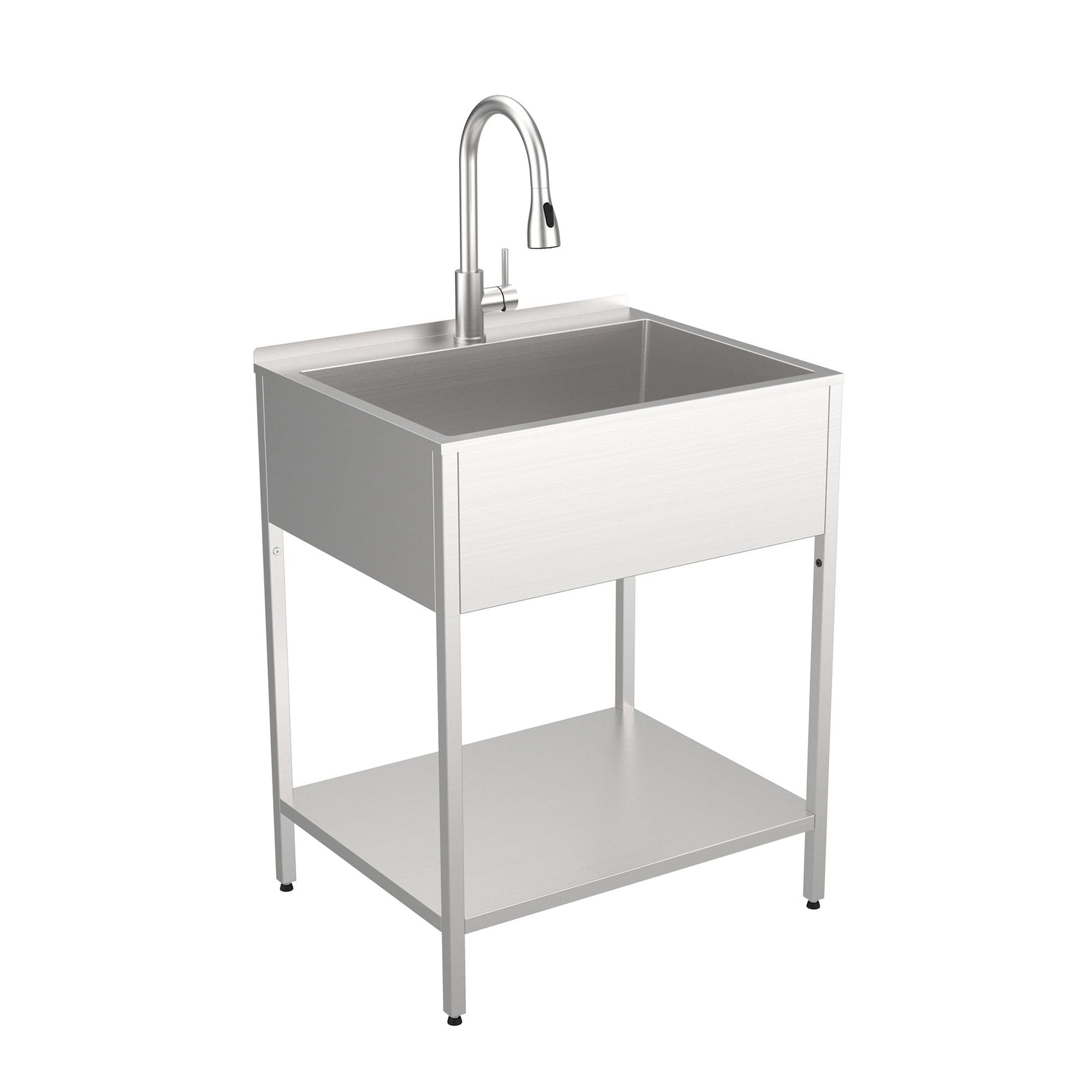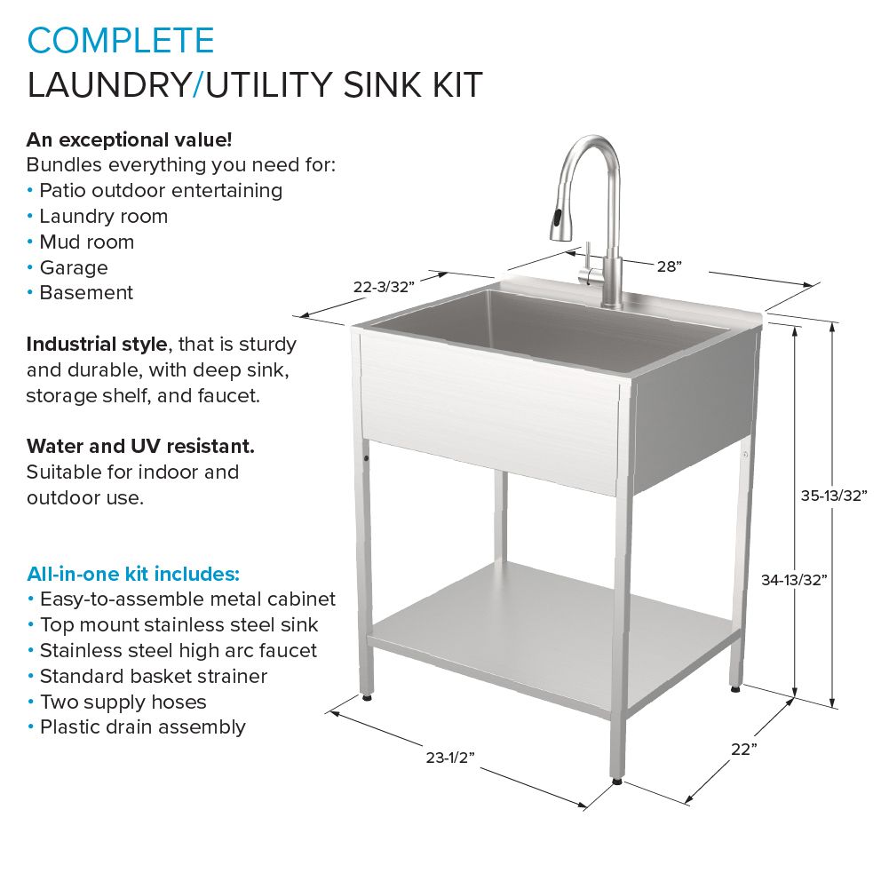 • Kit Includes: 28-inch utility sink with washstand and pull-down dual-spray faucet