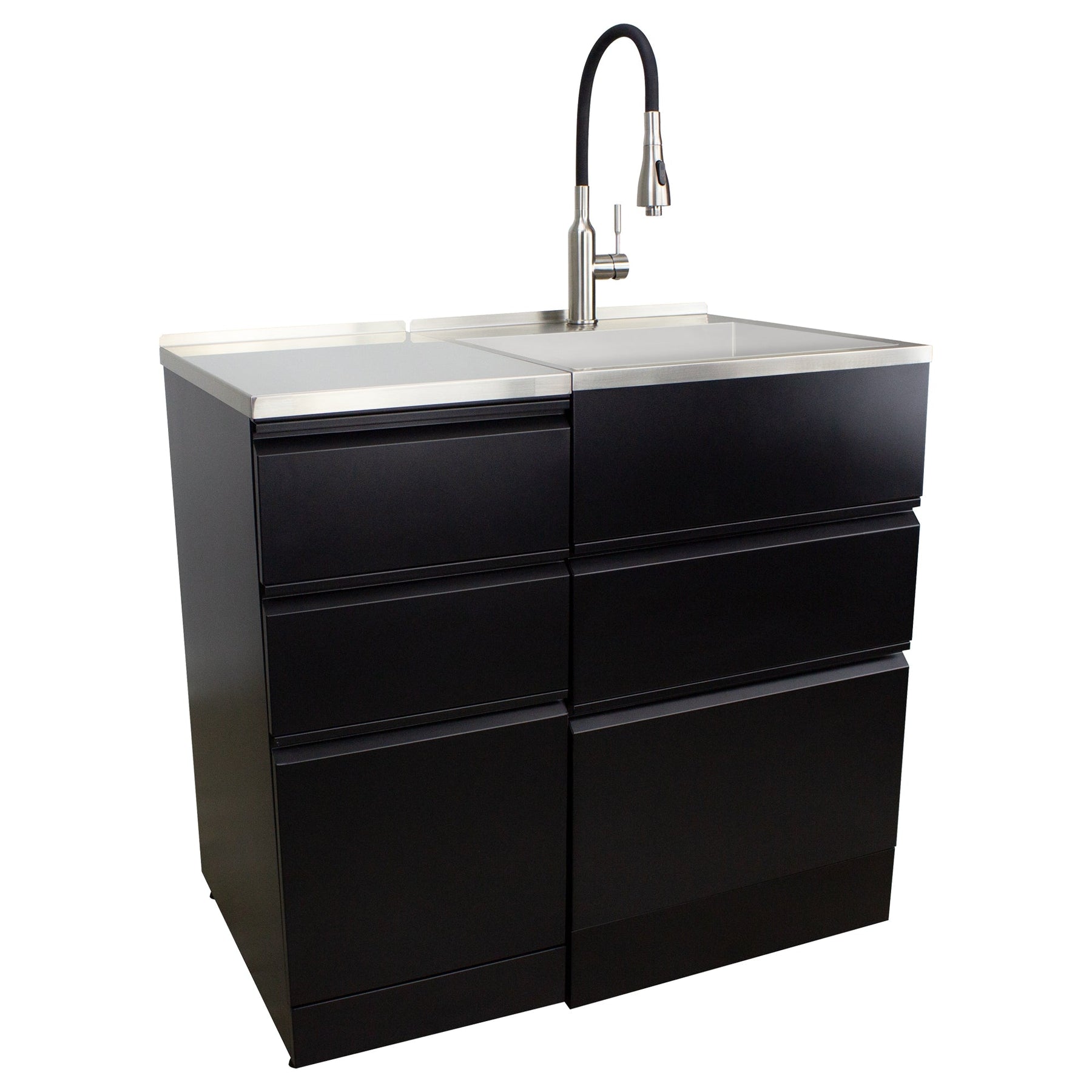 Transolid Matte Black Freestanding Laundry Sink with Cabinet and Faucet