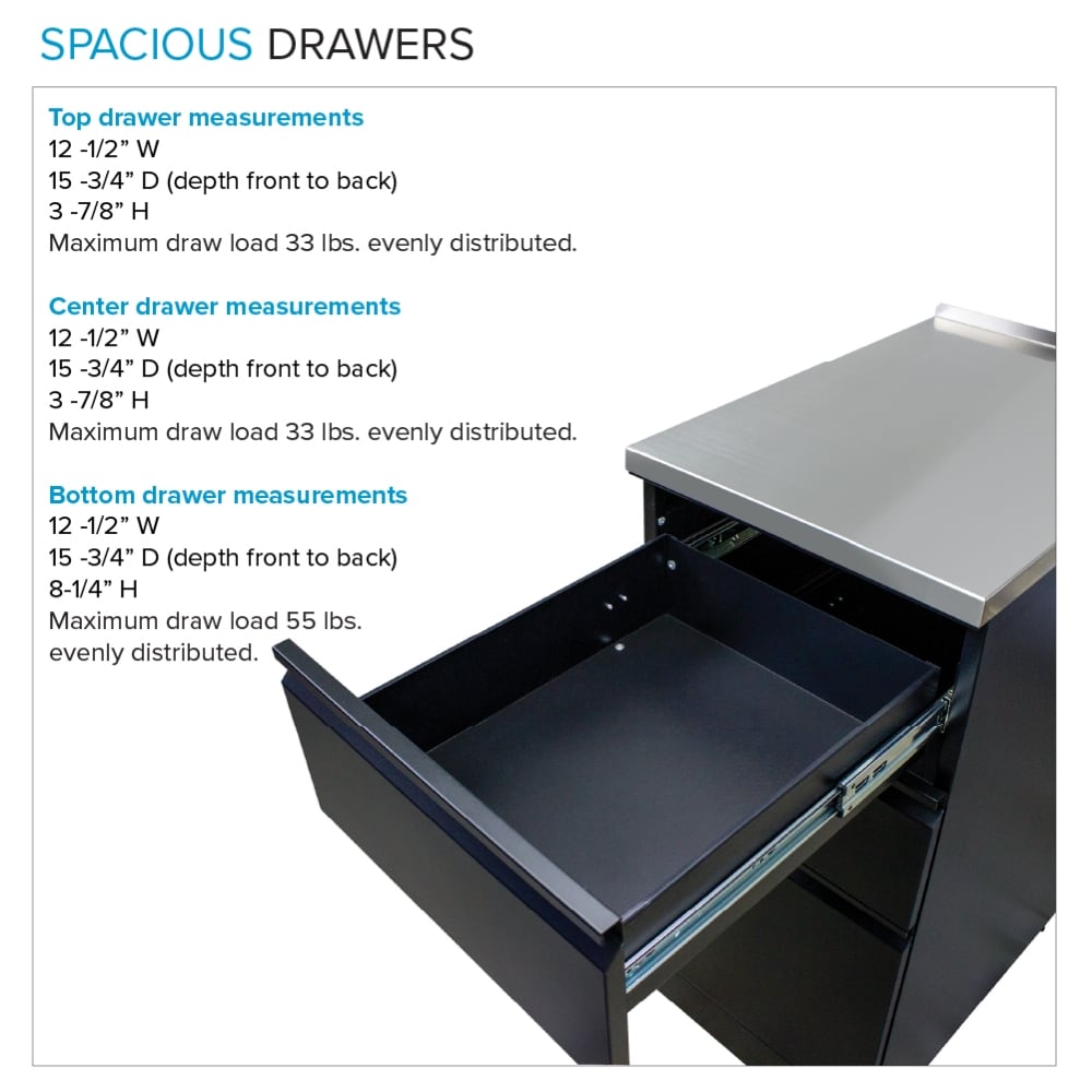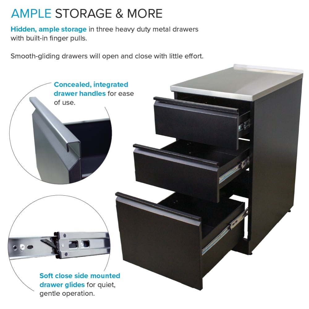 • Functional Storage: Includes pre-assembled metal cabinets with soft-close drawers to maximize organization and efficiency.
