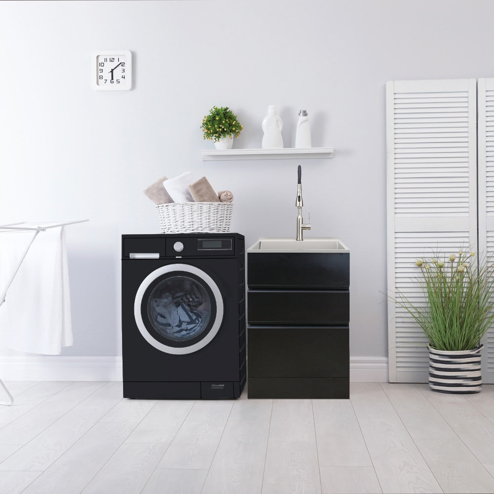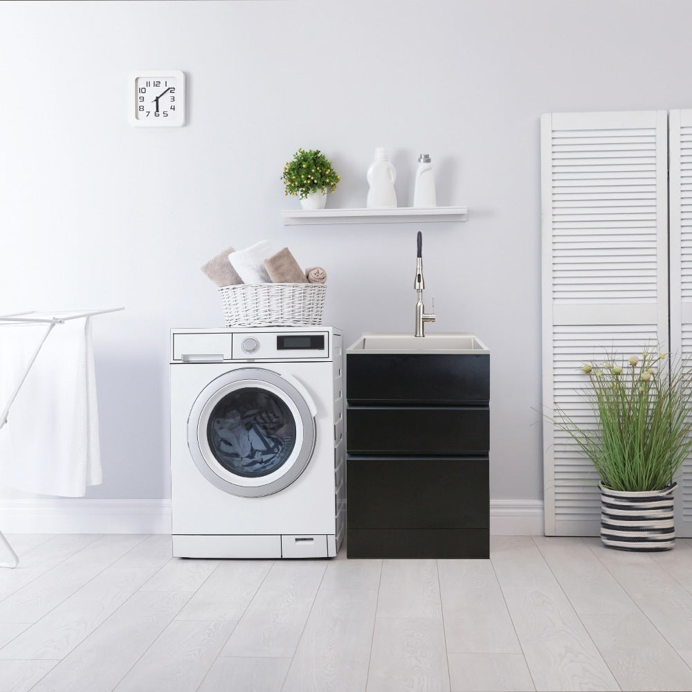 Transolid Matte Black Freestanding Laundry Sink with Cabinet and Faucet - 21.8x22.4 in
