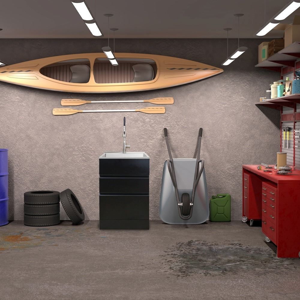 A: Yes, this sink is UV-resistant and designed for both indoor and outdoor use, making it suitable for garages, utility rooms, and even outdoor bars.