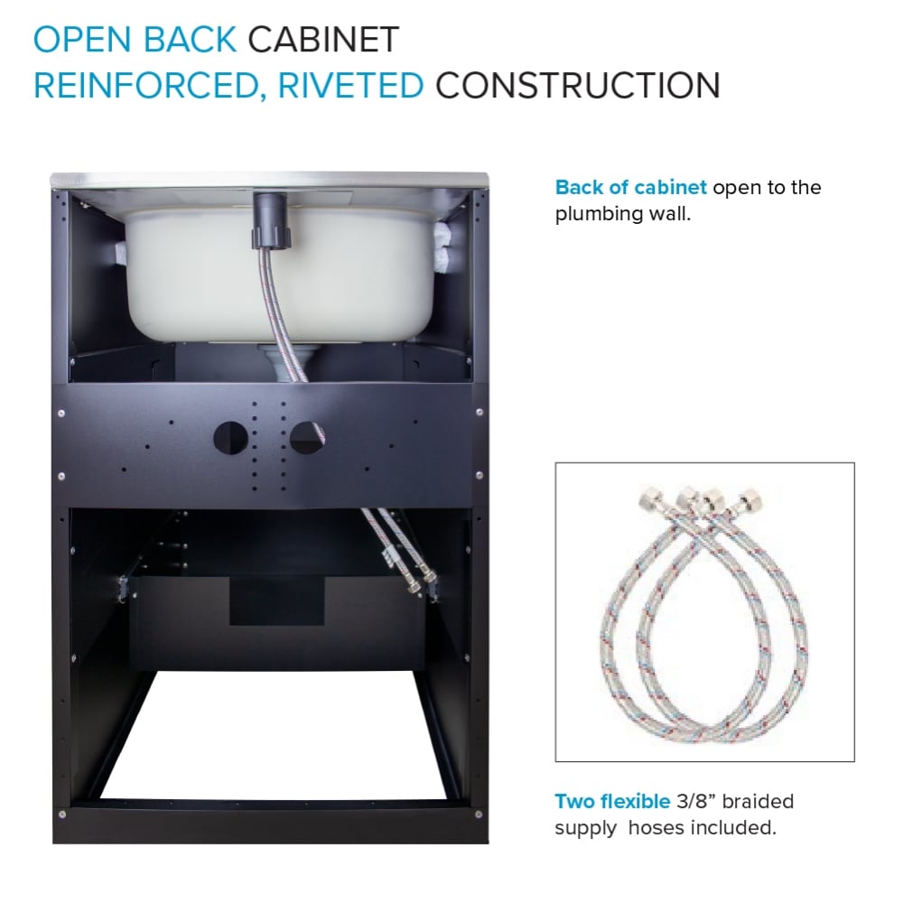 • Complete Kit: Includes a pre-assembled 2-drawer metal cabinet, stainless steel sink, and adjustable high arc Flex+Freeze faucet.