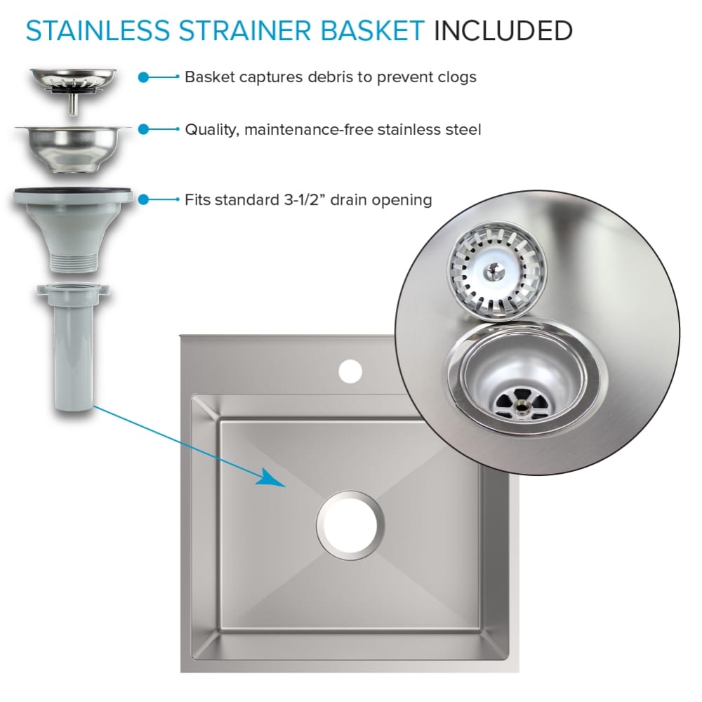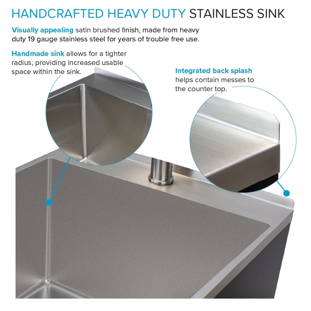• Spacious Sink Bowl: 9-inch deep, 19-gauge sink holds up to 14 gallons, accommodating large items with ease.