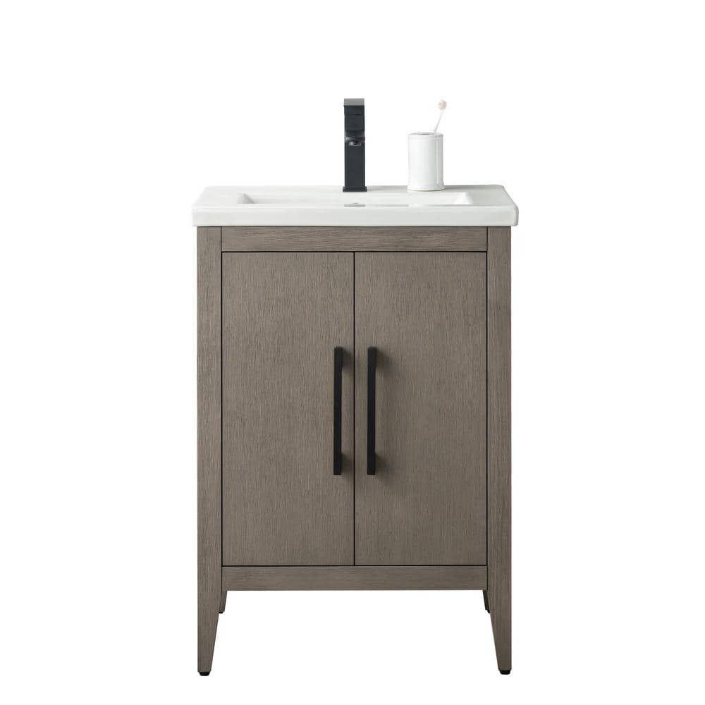 Vanity Art 24 in. W x 18.5 in. D x 34 in. H Single Sink Bathroom Vanity Cabinet in Driftwood Gray with White Ceramic Top