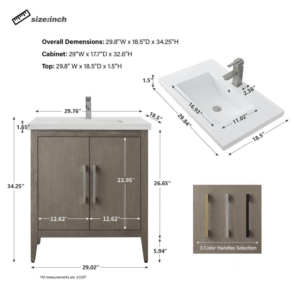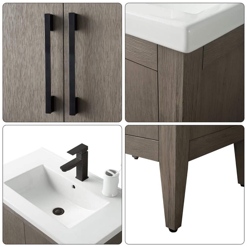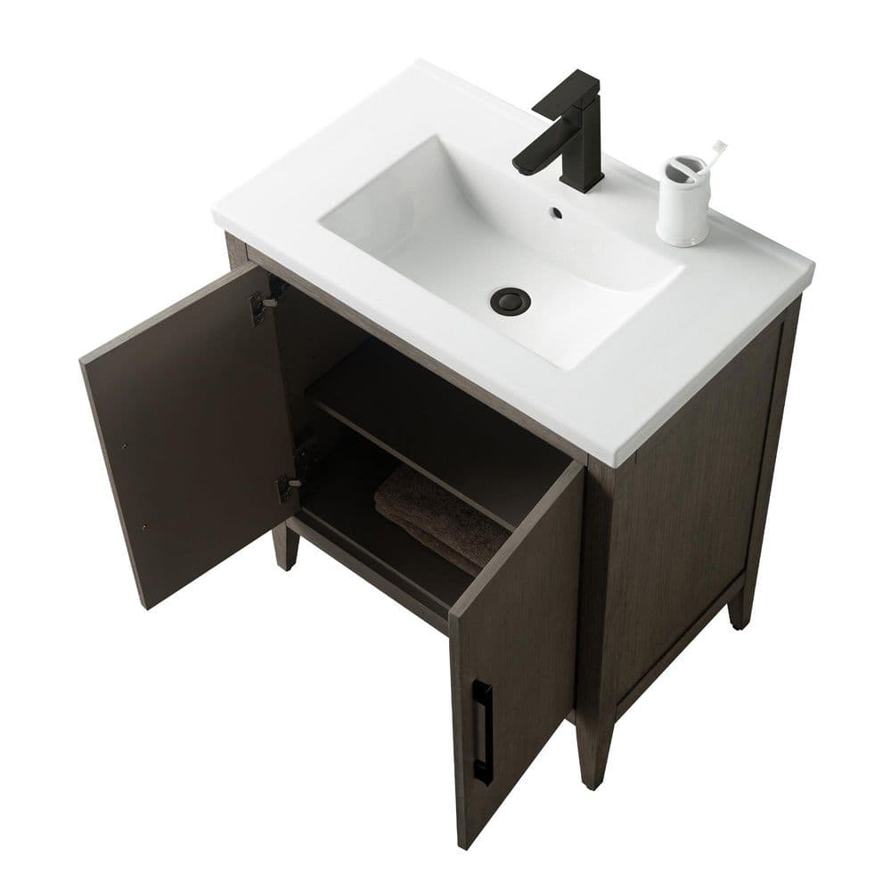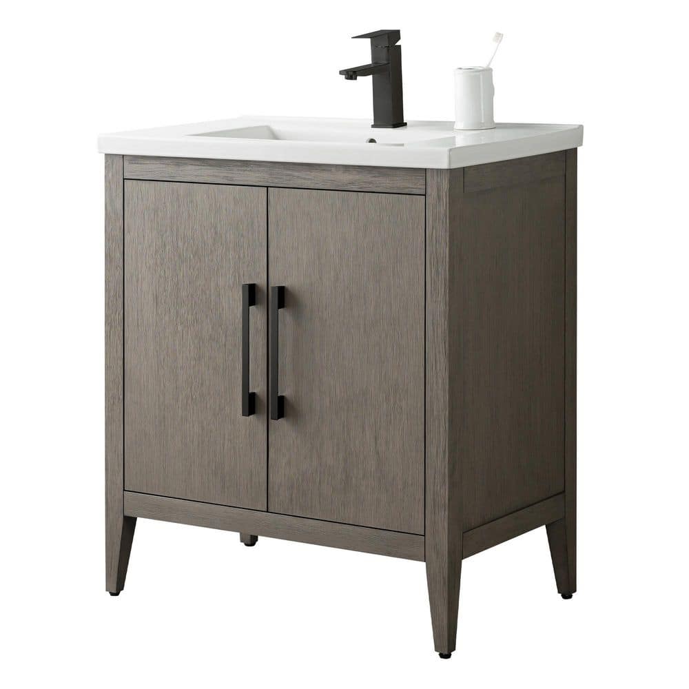 Vanity Art 30 in. W x 18.5 in. D x 34 in. H Single-Sink Bathroom Vanity Cabinet in Driftwood Gray with White Ceramic Top