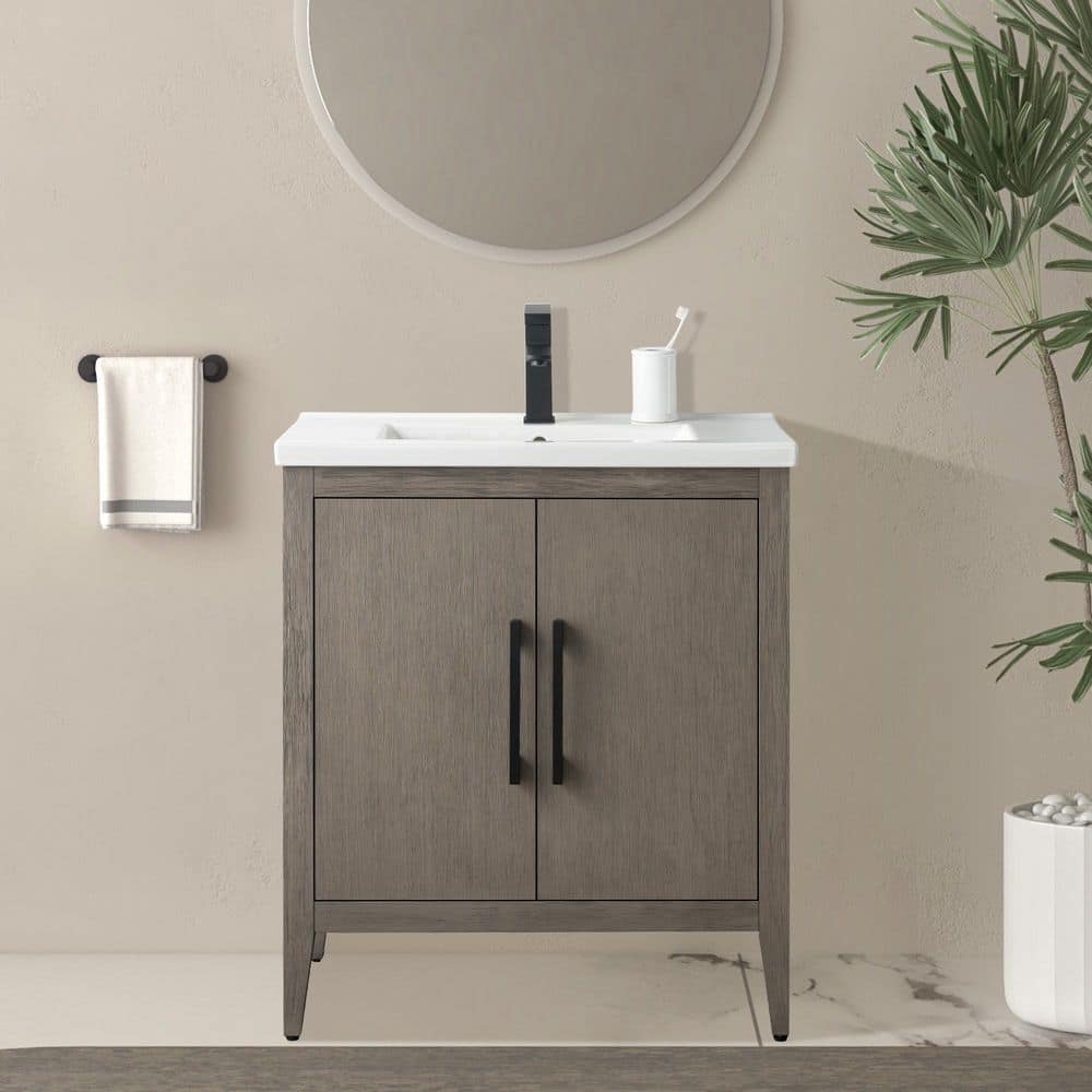 30-in Driftwood Gray Single-Sink Bathroom Vanity with White Ceramic Top