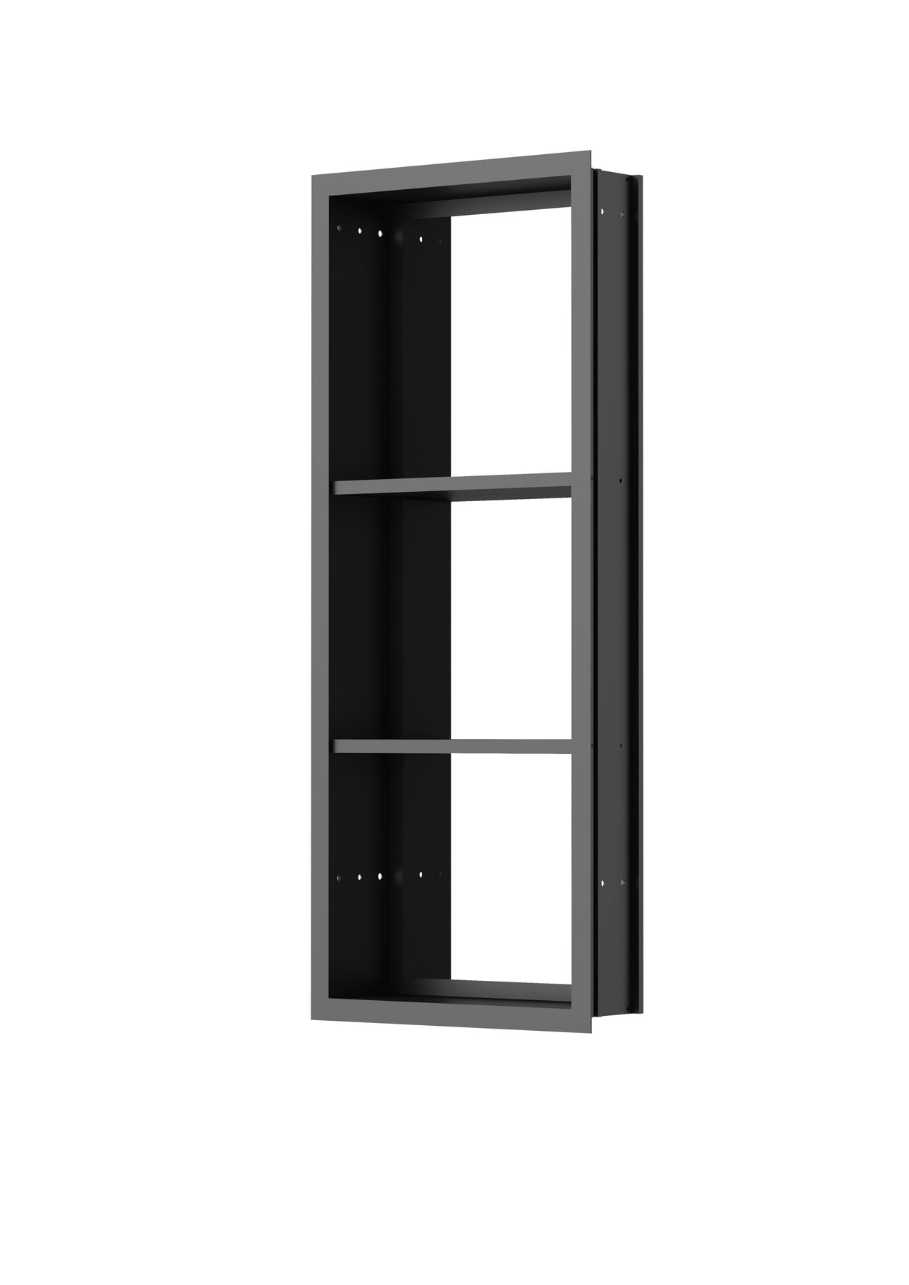 WELLFOR 12-in X 30-in Matte Black Metal Mirrored Side Storage Shelf for Medicine Cabinet