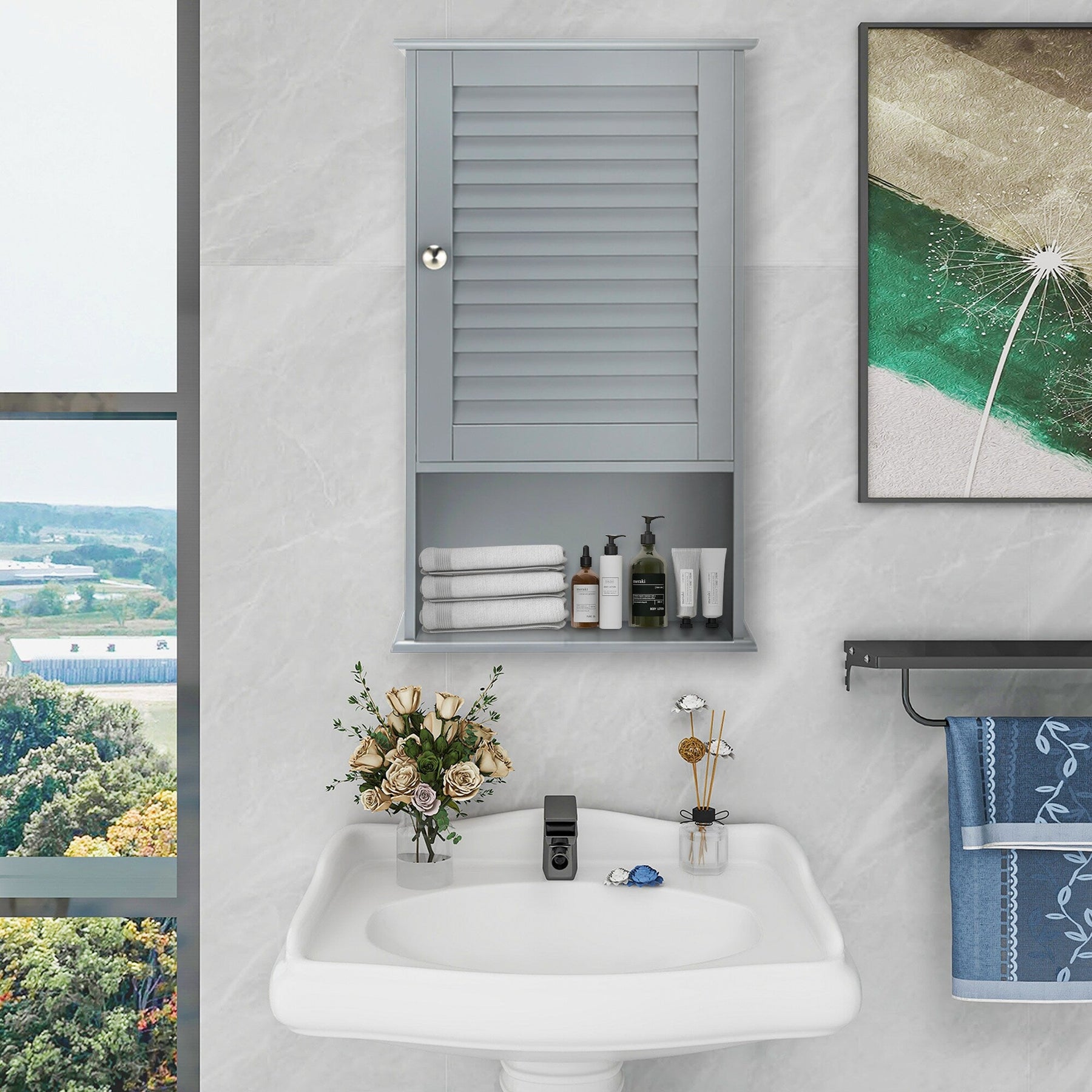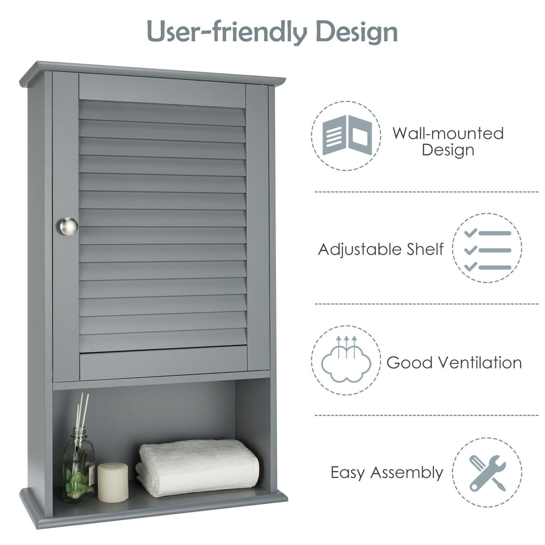 Gray Bathroom Wall Cabinet with Louver Door