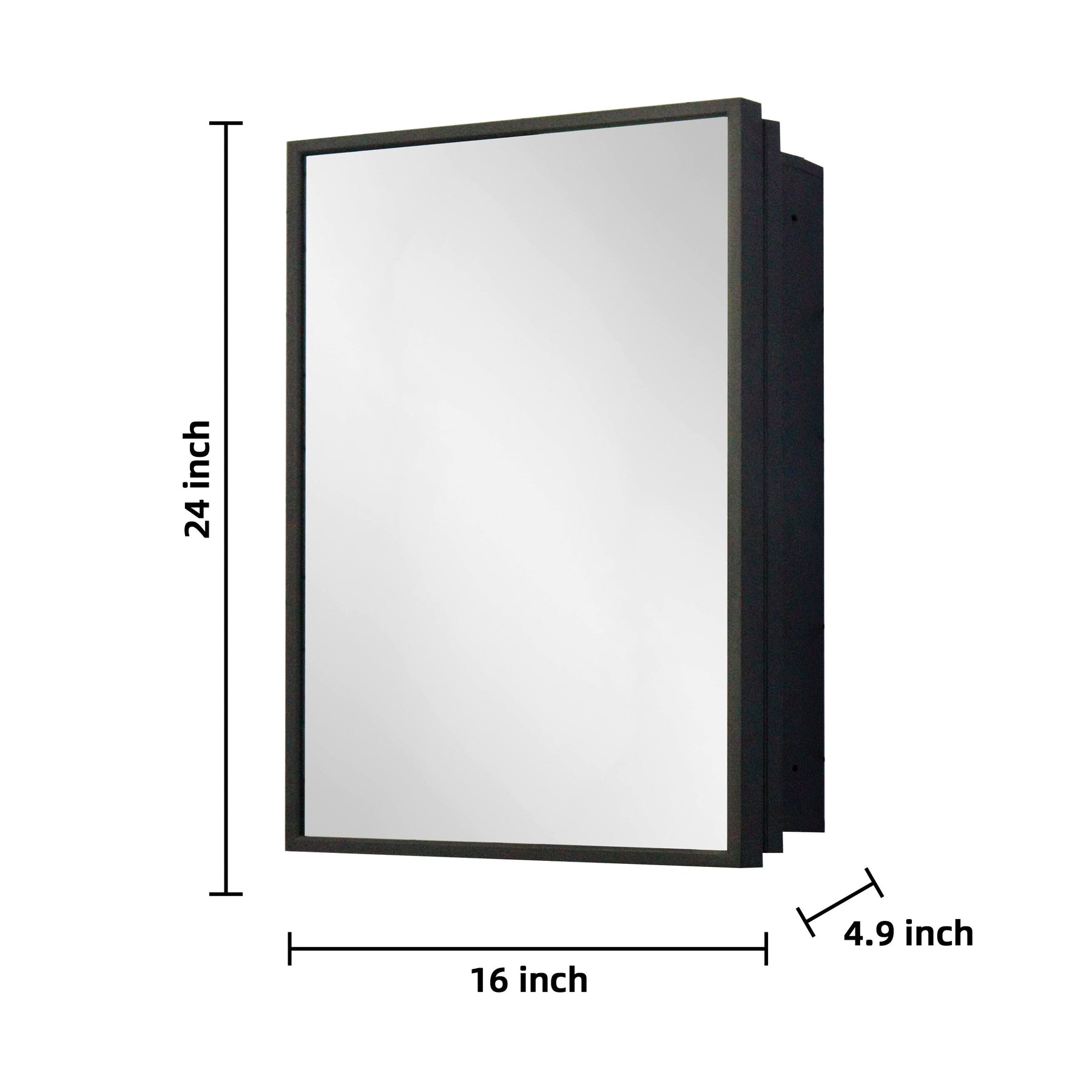 WELLFOR 16-in x 24-in Surface/Recessed Mount Black Mirrored Medicine Cabinet