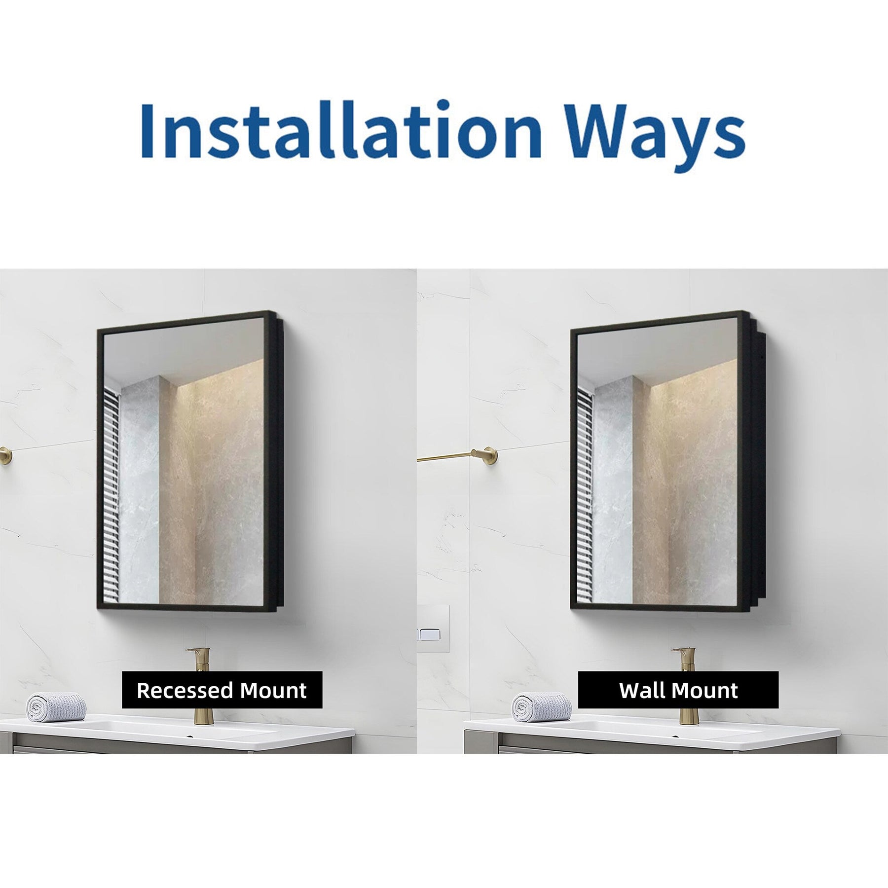 A: This cabinet can be installed either as a wall-mounted unit for easy access or recessed into the wall for a streamlined look.