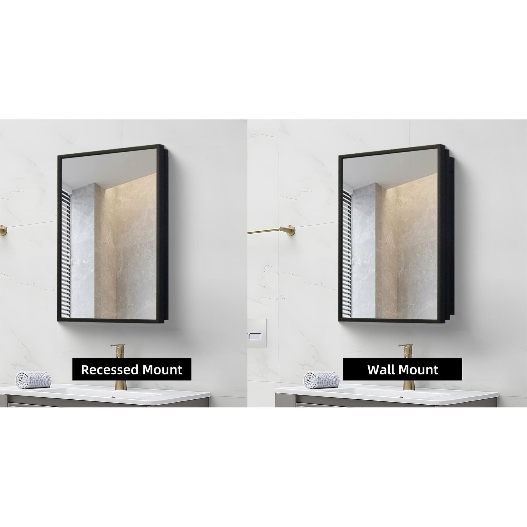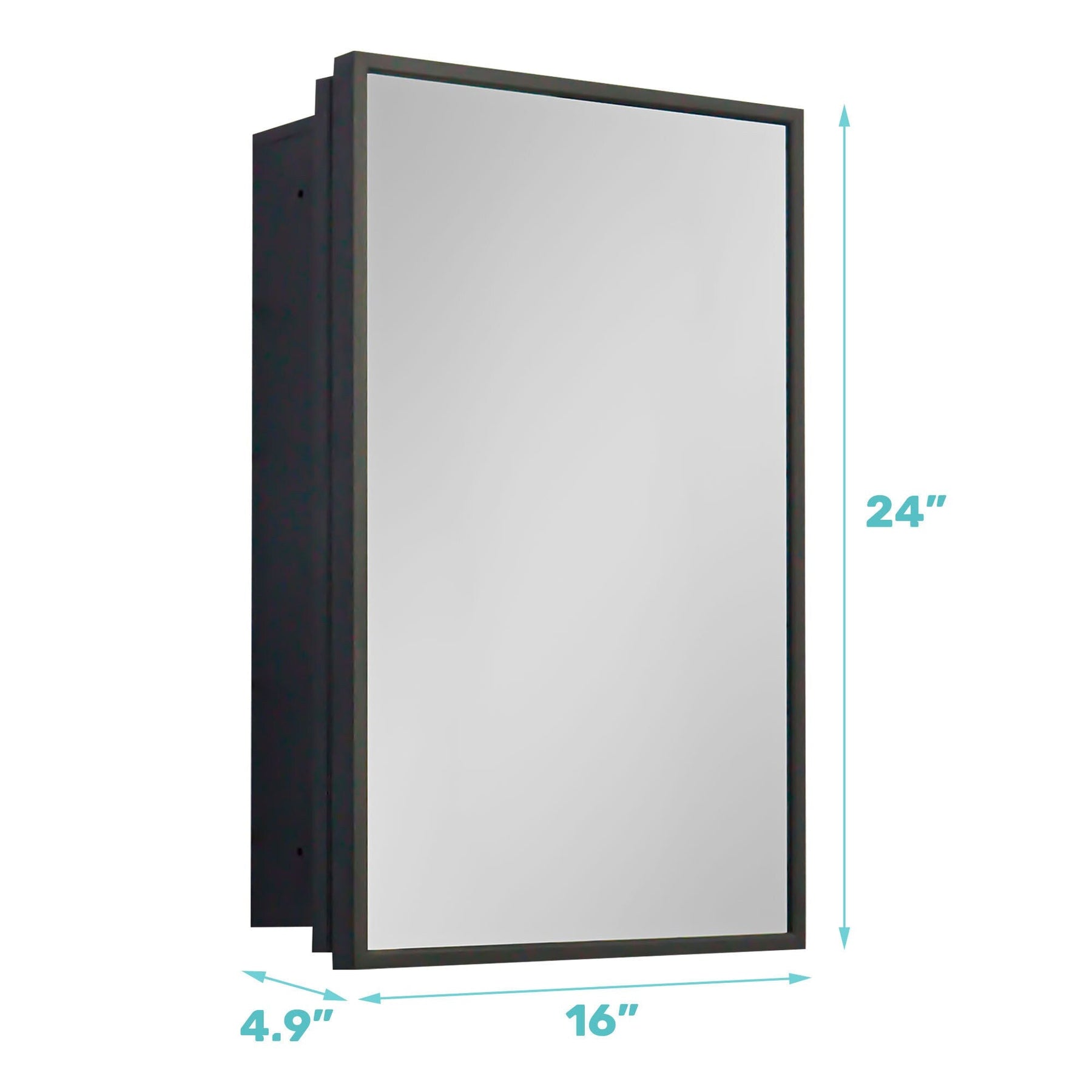 WELLFOR 16-in x 24-in Surface/Recessed Mount Black Mirrored Medicine Cabinet