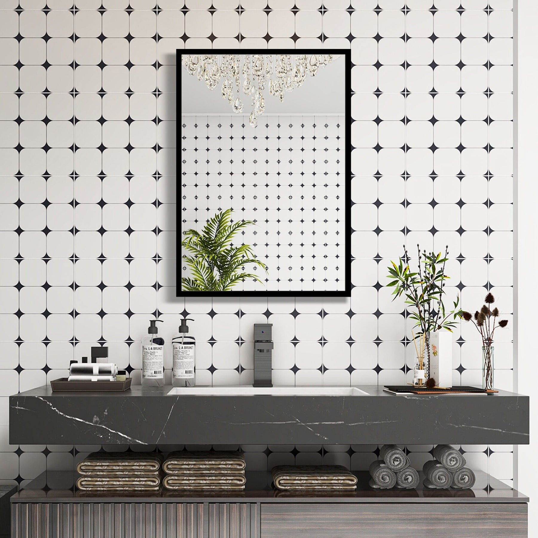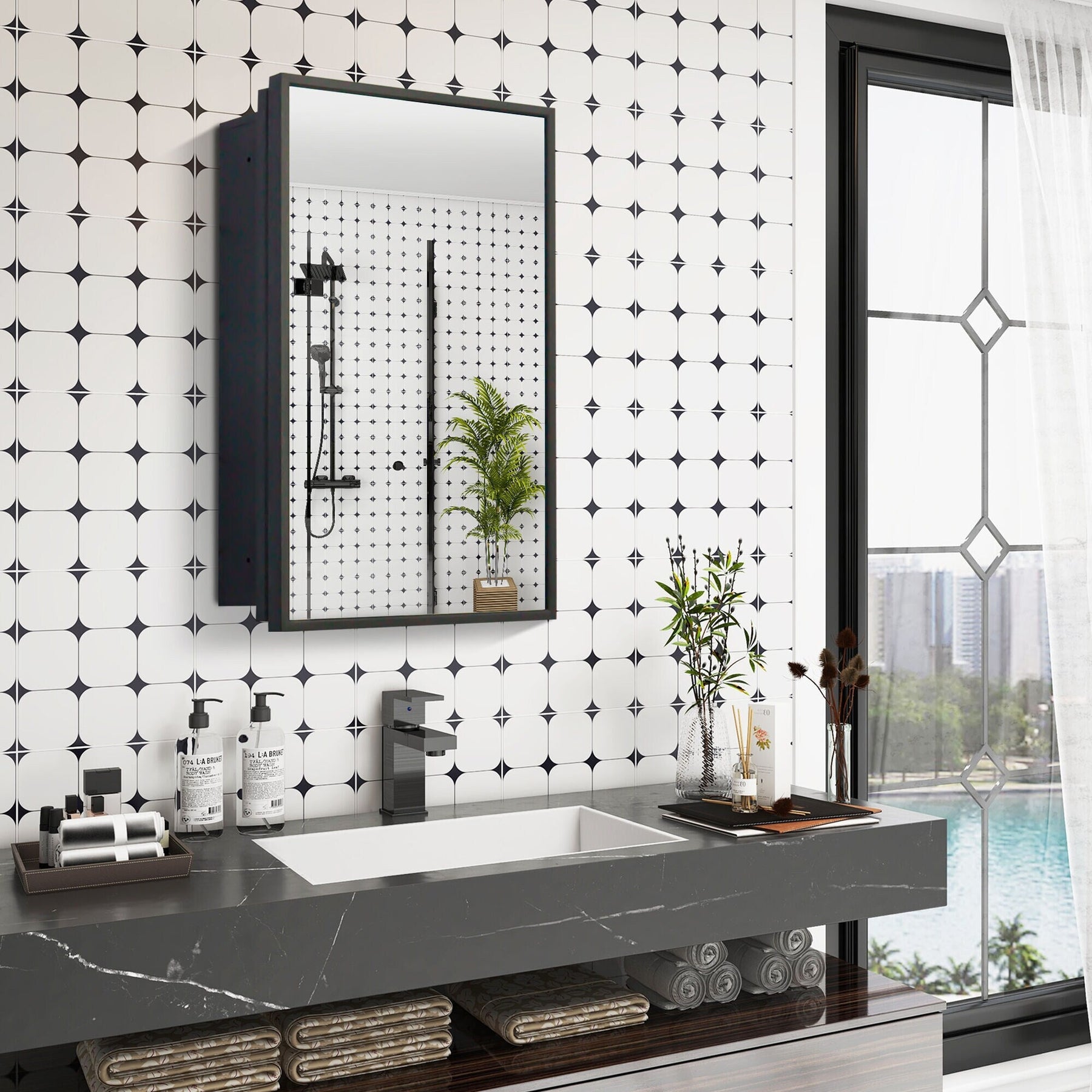 Transform your bathroom into a sanctuary of style with the WELLFOR Black Mirrored Medicine Cabinet. Its refined black frame and edge add a sophisticated element that seamlessly integrates into contemporary design themes. The sleek mirror not only serves as a practical addition but also brings depth and brilliance to the room. Style it atop a minimalist vanity, complemented with matte black fixtures for a cohesive aesthetic. This cabinet is the epitome of modern luxury and function, making it a coveted piece for any stylish abode.