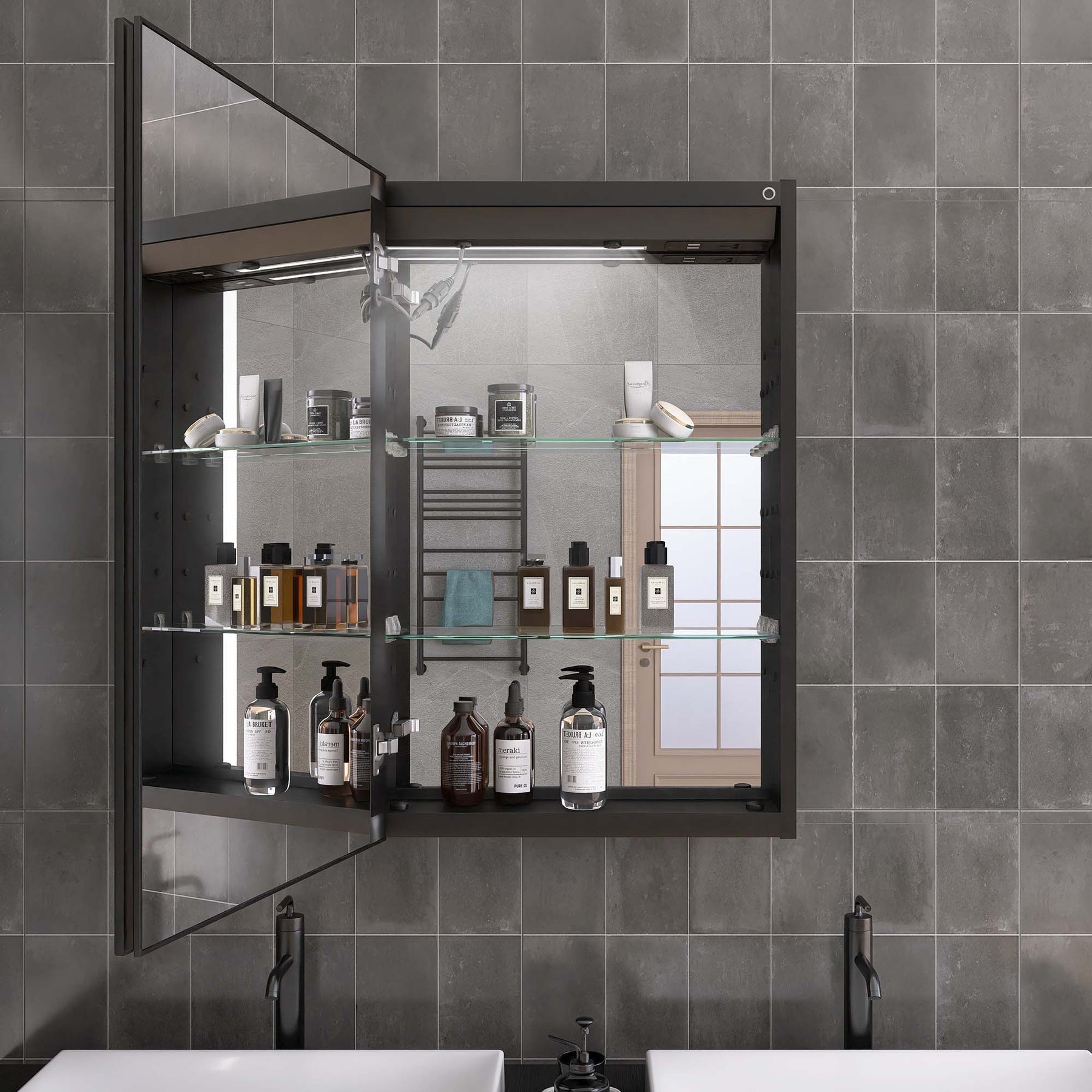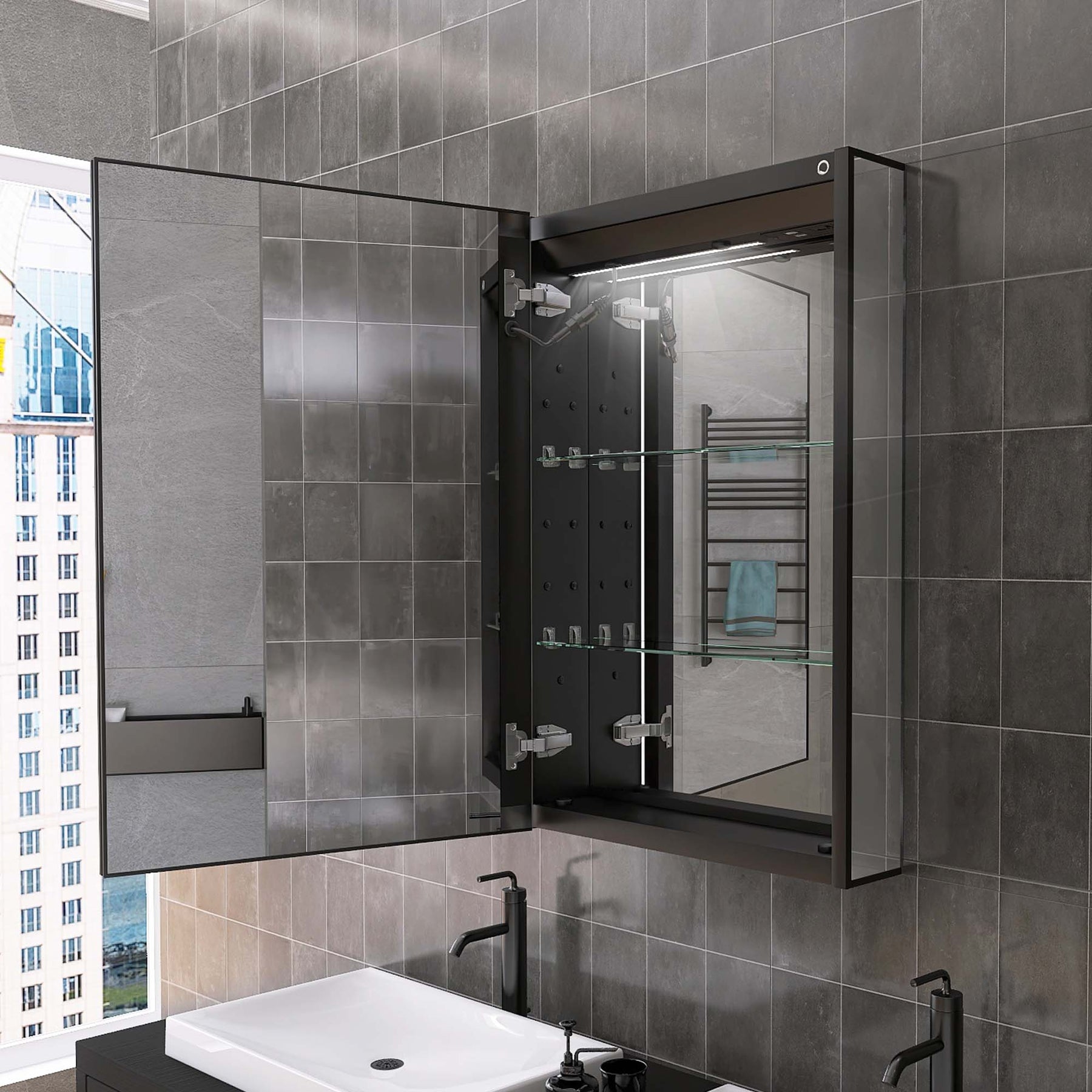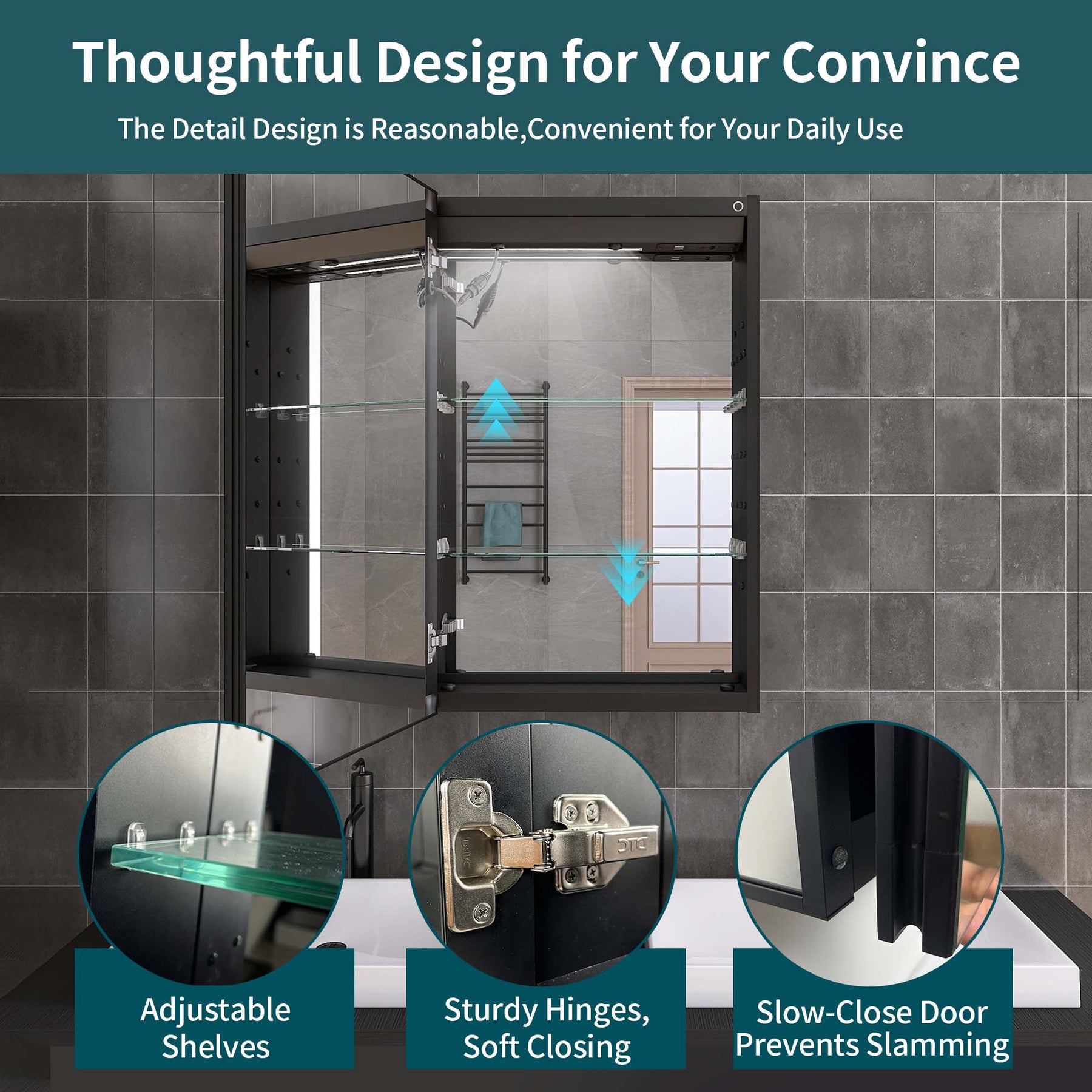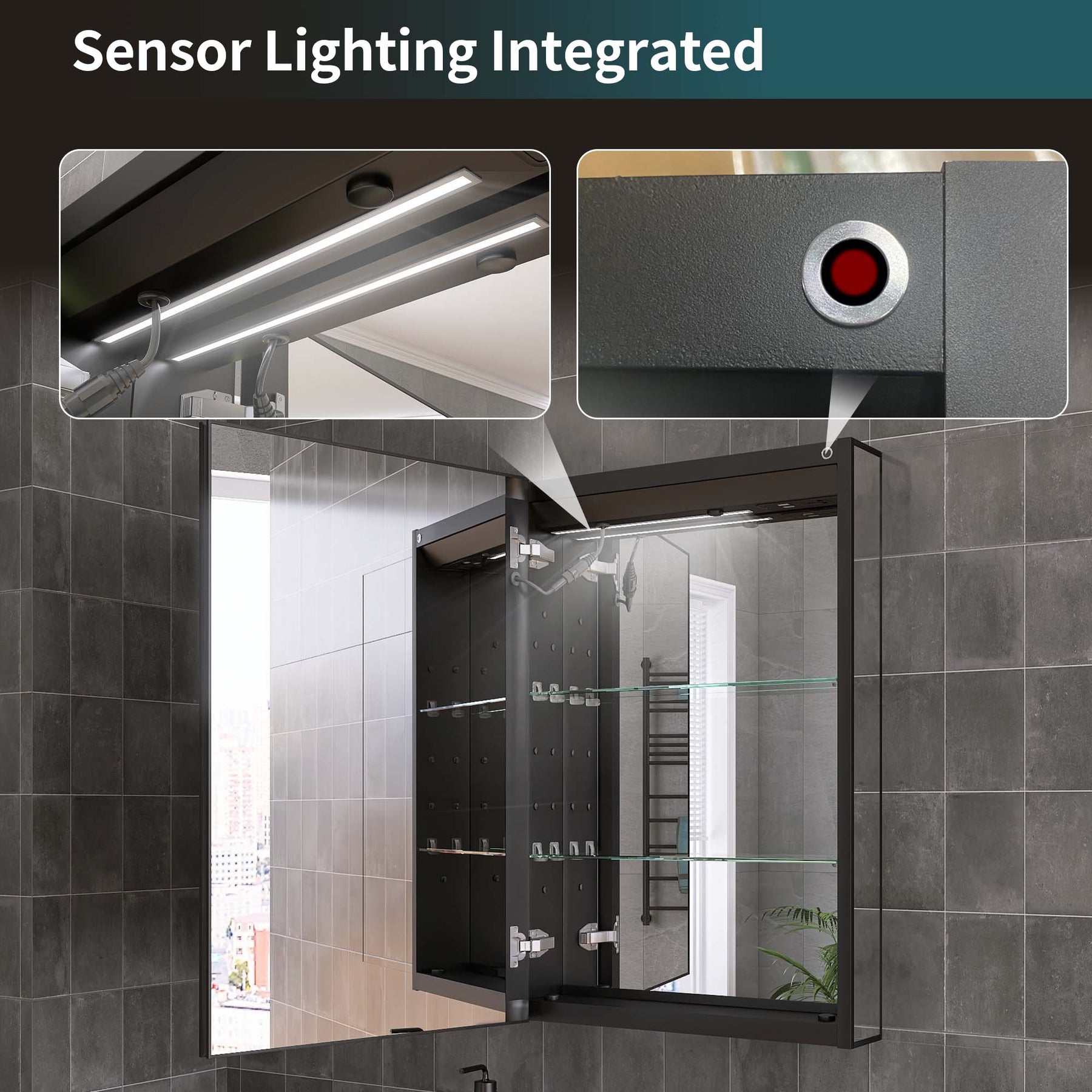 Fog-Free Matte Black Lighted Mirrored Medicine Cabinet