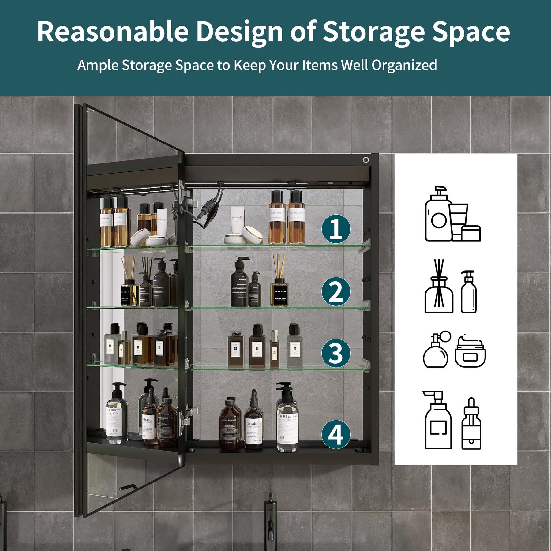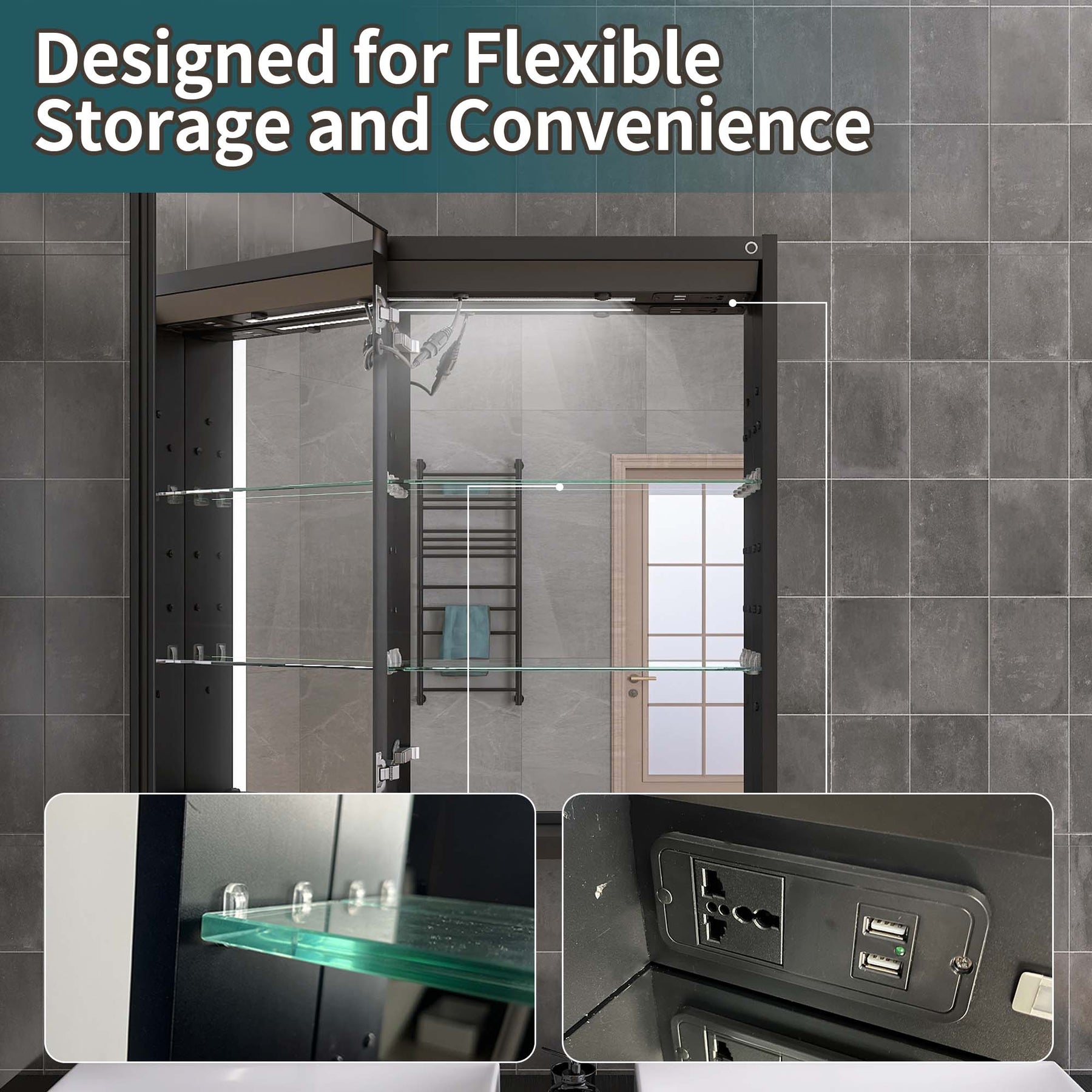 • Adjustable Storage: Features 3 customizable glass shelves to accommodate various bathroom essentials.