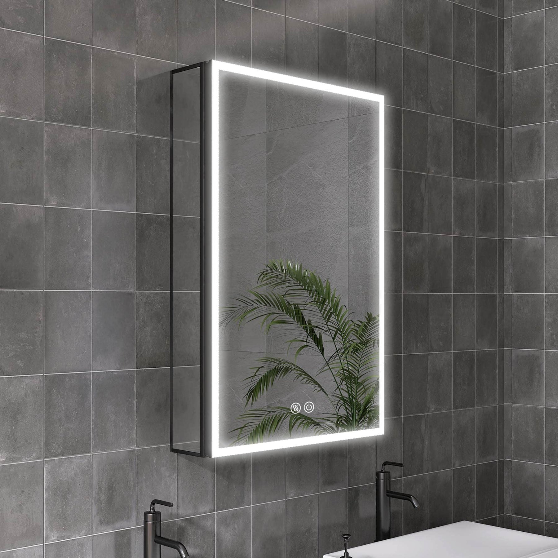 Transform your bathroom into a sleek, luxurious haven with this stunning LED-lit medicine cabinet. Its striking matte black finish and full-overlay mirrored surfaces cast an ambiance that is both functional and chic. Create a dramatic effect by installing it against a textured wall, allowing it to become the centerpiece of your space. This piece not only enhances your daily routine but also embodies the essence of opulent living, blending seamlessly with contemporary interiors.