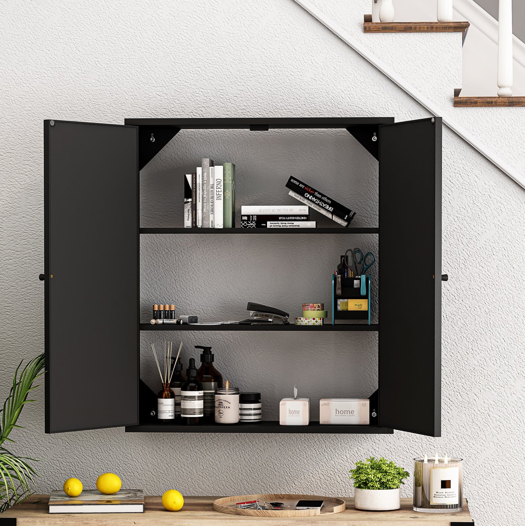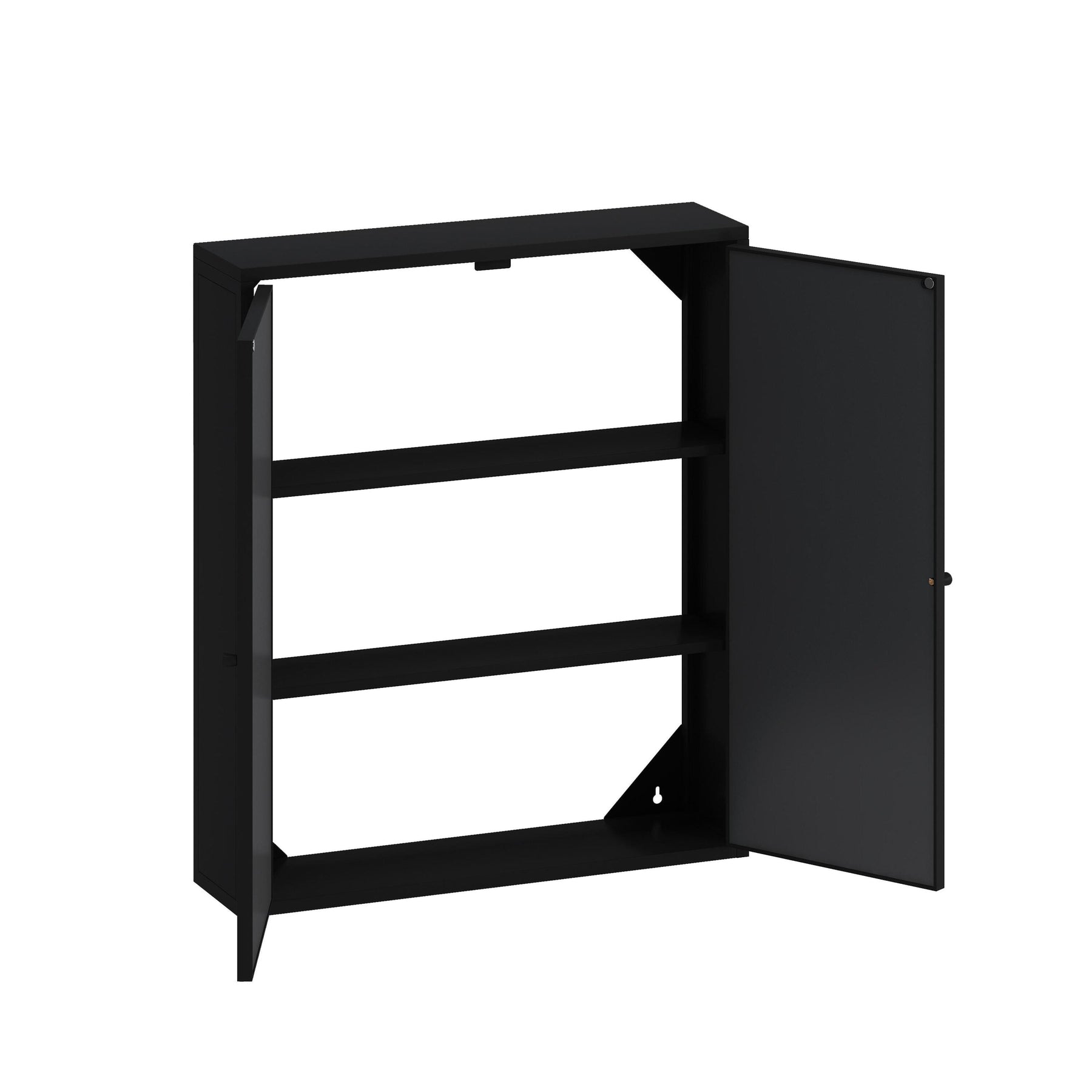 The WELLFOR medicine cabinet transforms ordinary spaces into elegant retreats with its vintage-inspired charm and modern sensibility. Its sleek black finish adds depth and sophistication to any room, while the mirrored doors reflect light and expand the visual space. Style it above a bathroom vanity to introduce an instant ambience of classic luxury, or use it in a hallway for functional style. This cabinet is more than just storage—it's a design statement that epitomizes refined living.