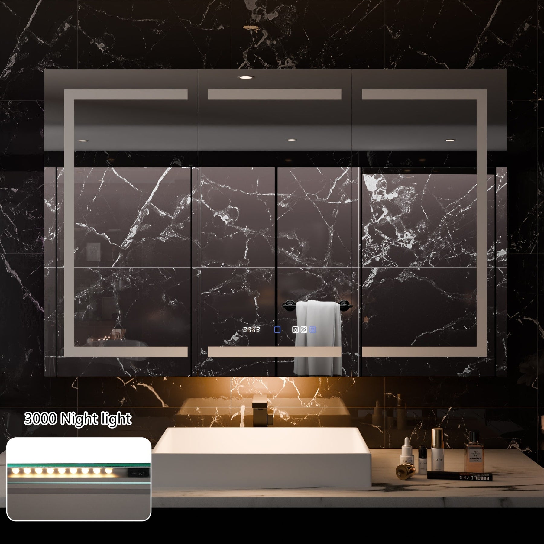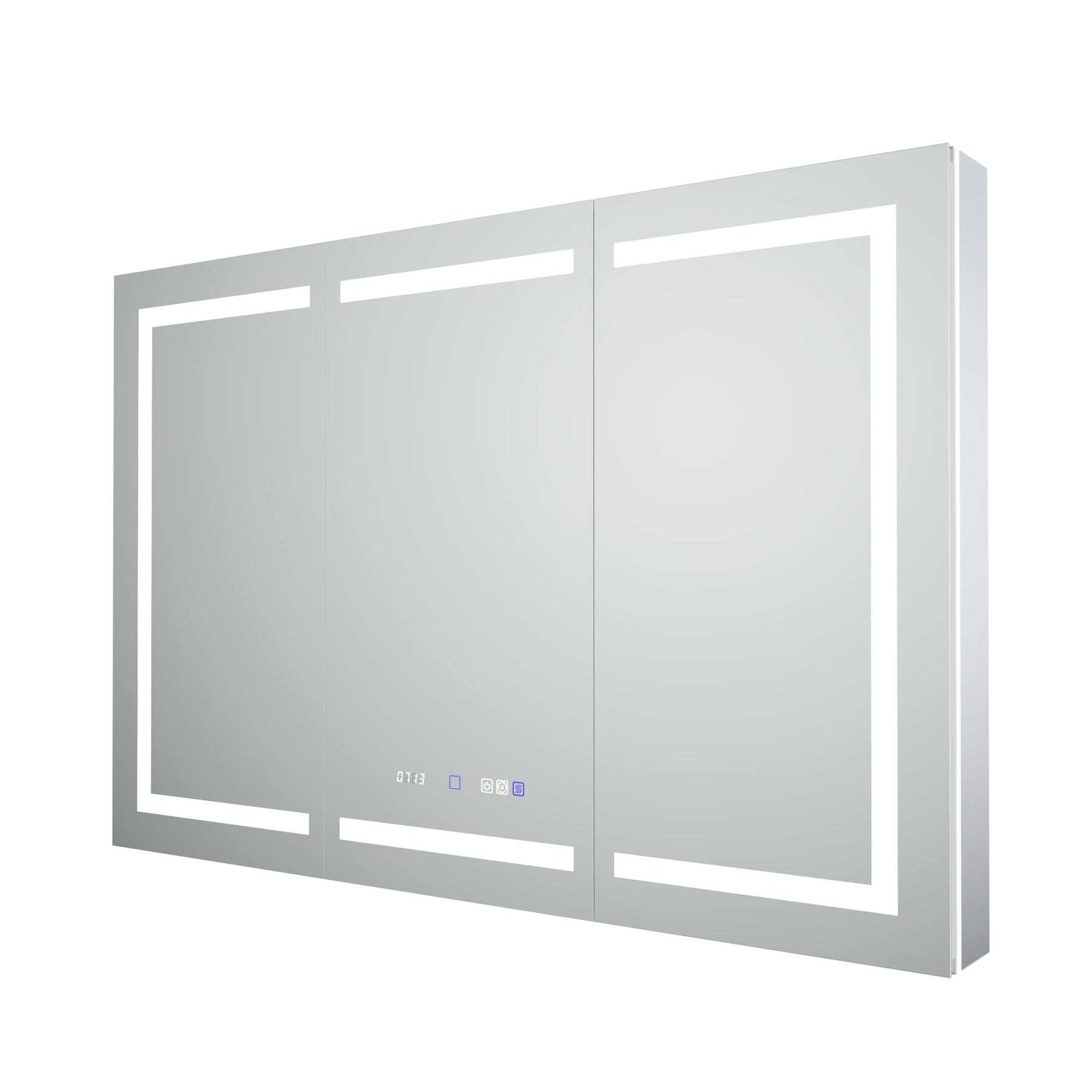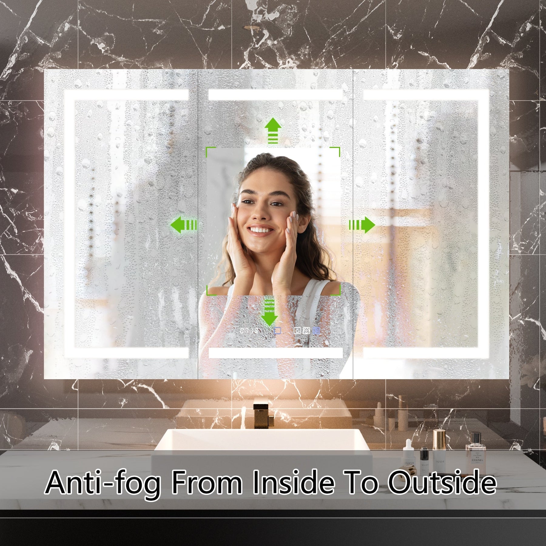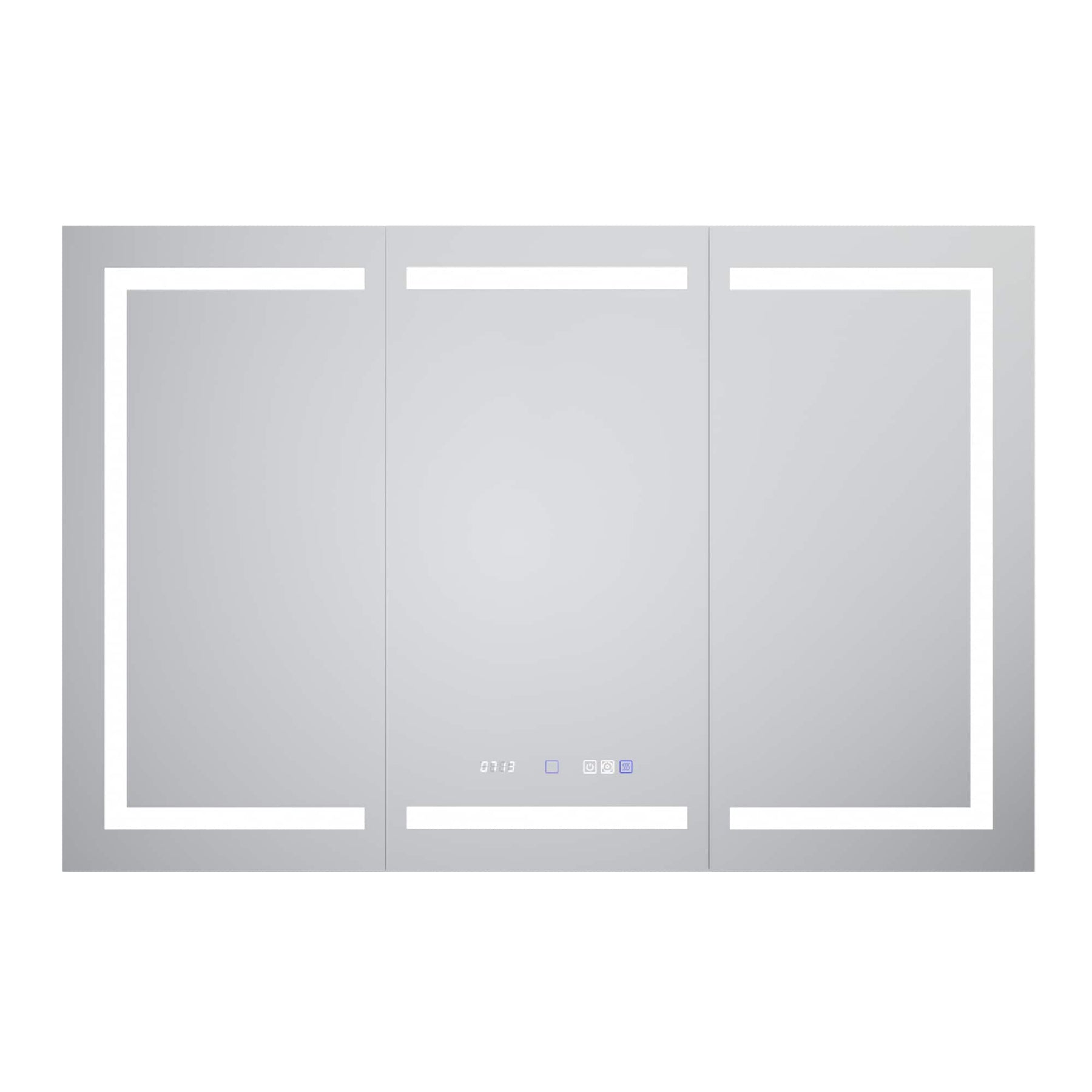 WELLFOR 54-in x 36-in Lighted LED Fog Free Surface/Recessed Mount Silver Mirrored Soft Close Medicine Cabinet with Outlet