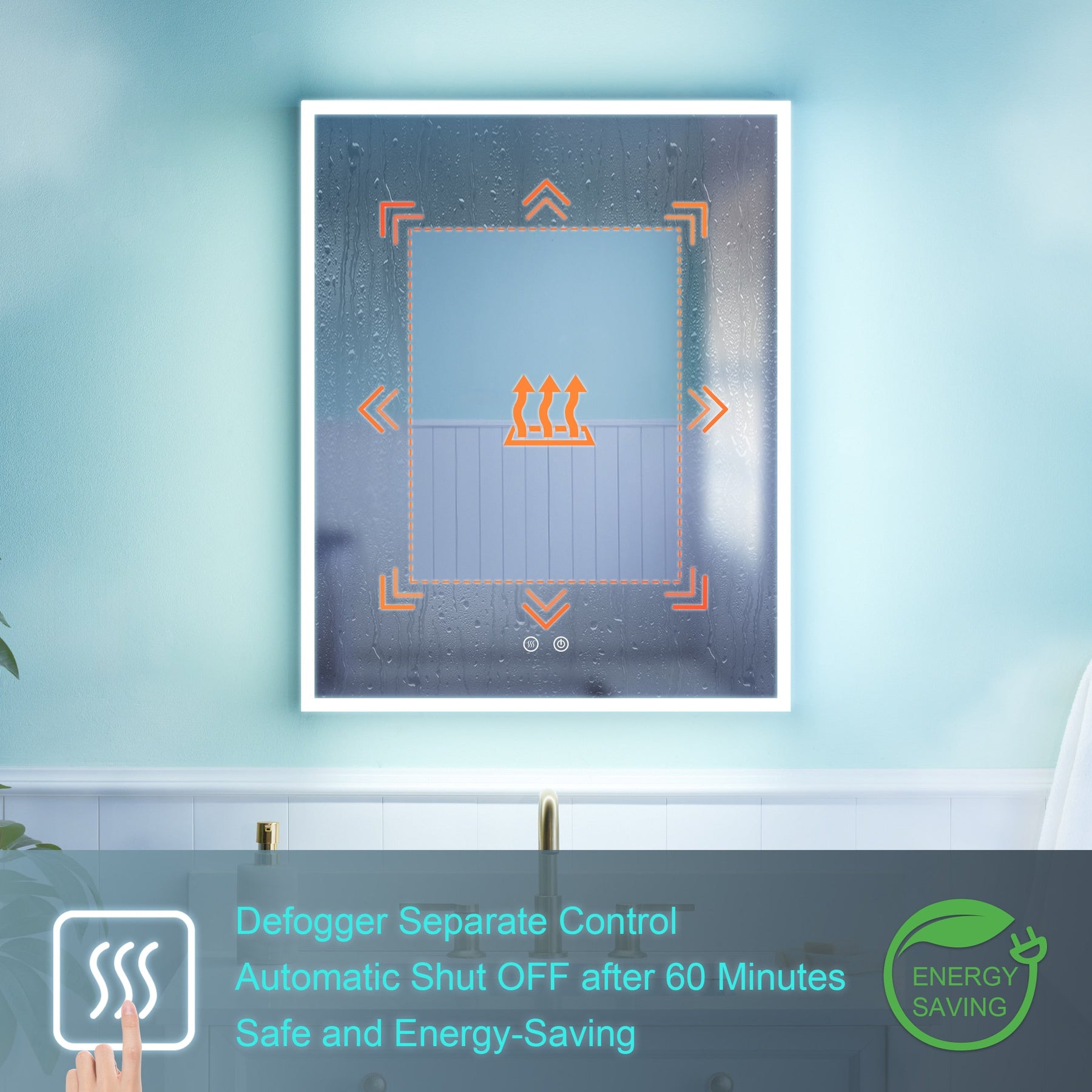 A: The anti-fog feature is controlled via touch buttons and will automatically shut off after 60 minutes for energy efficiency.