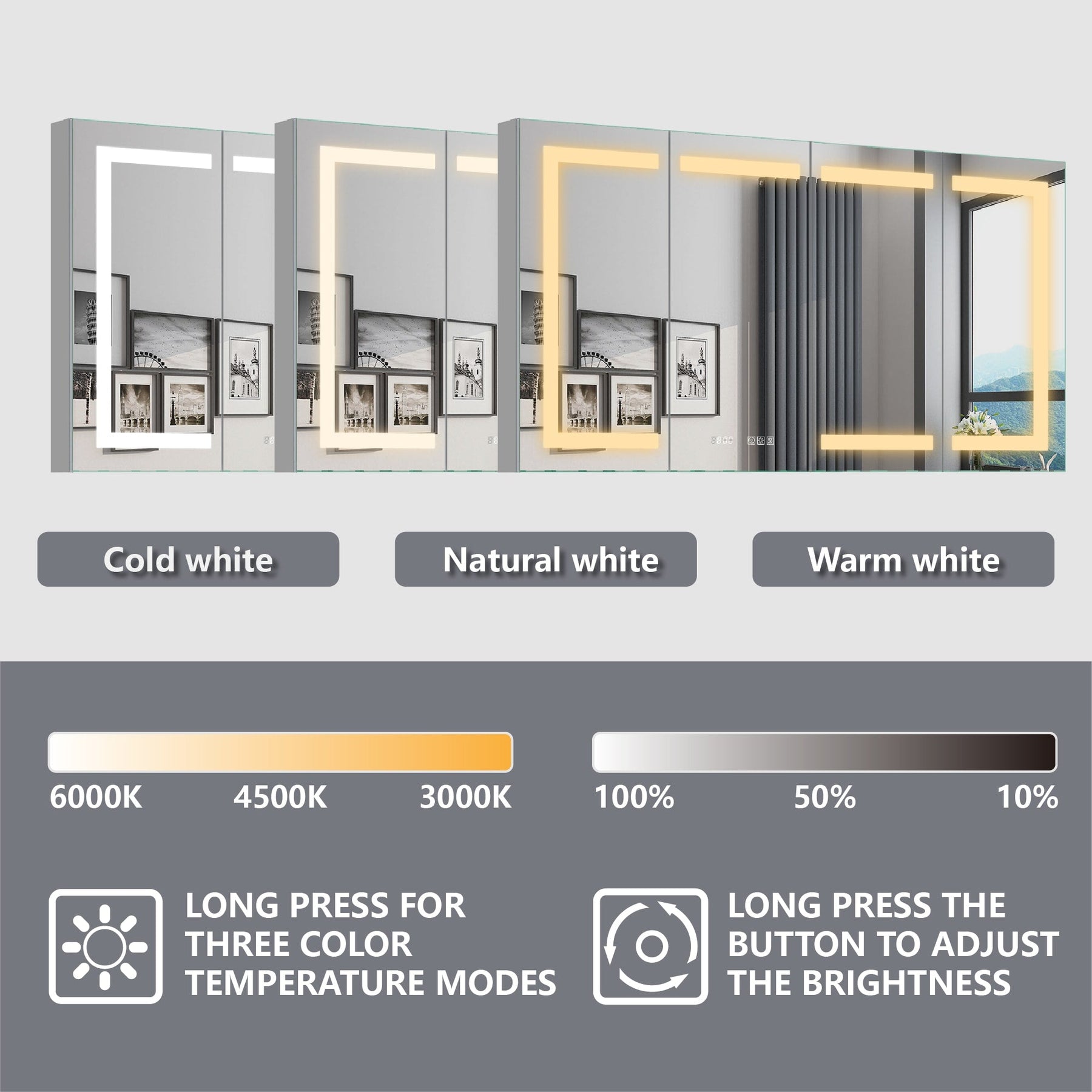 A: The cabinet's LED lighting color temperature (3000K-6000K) and brightness can be adjusted using the built-in touch controls on the mirror surface.