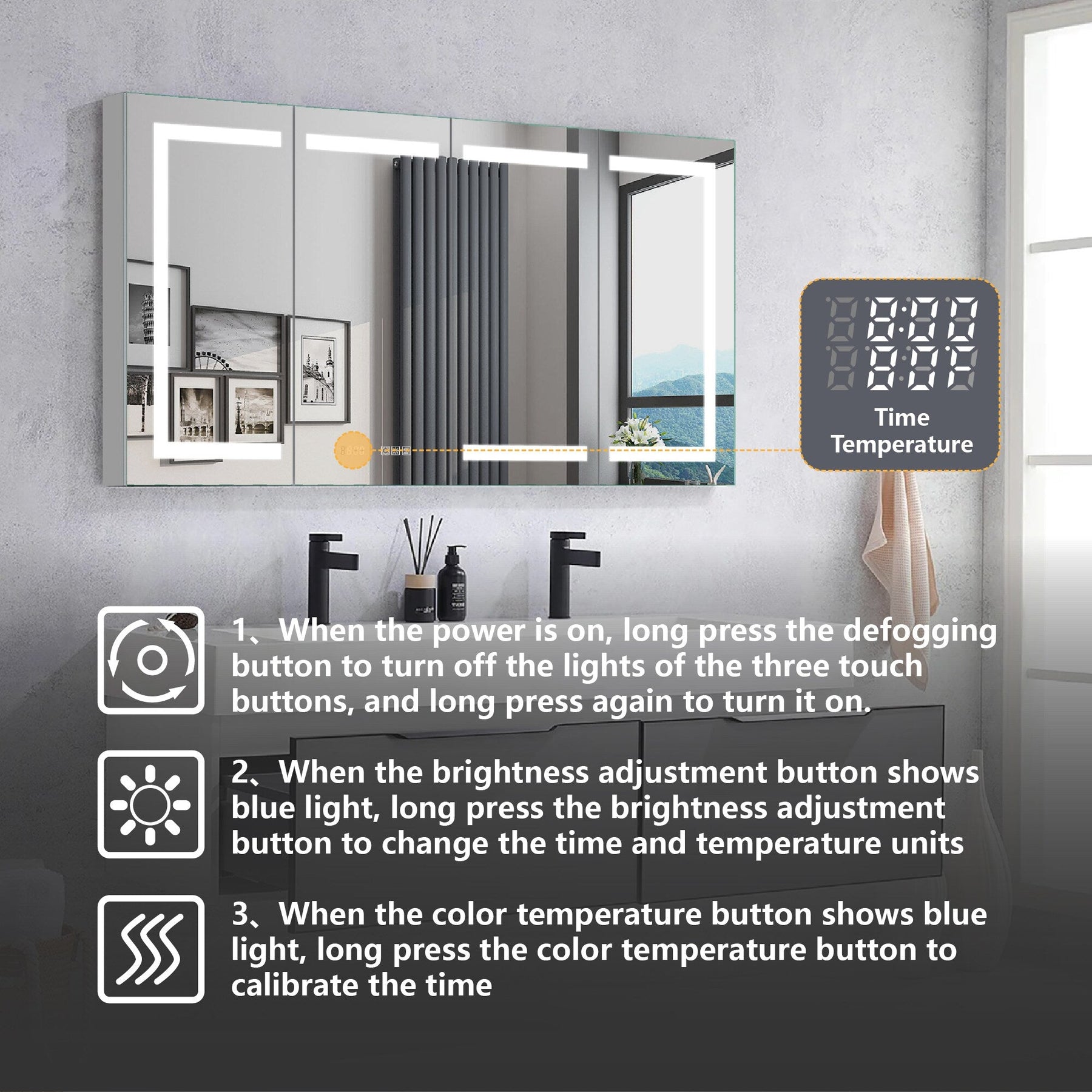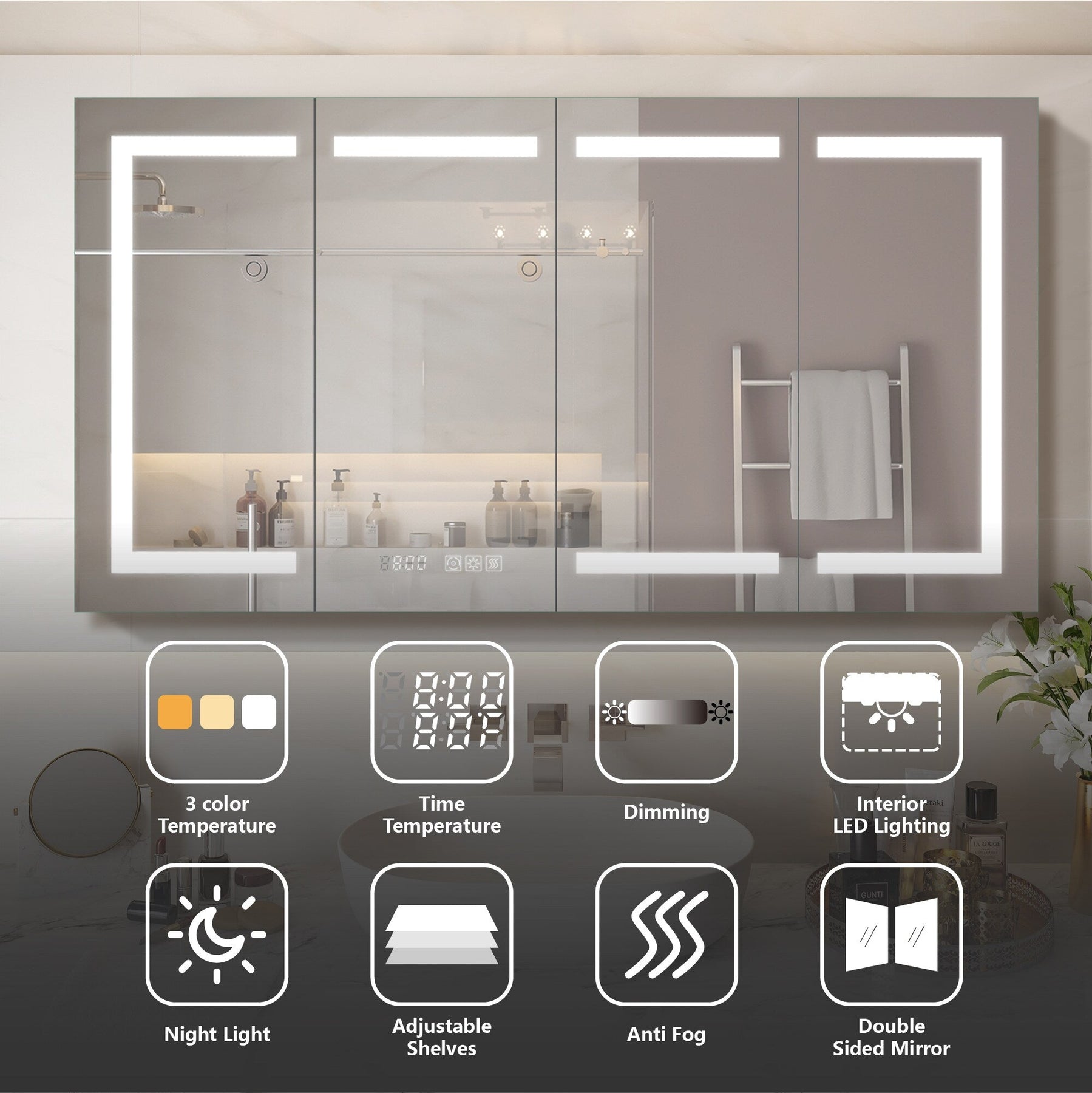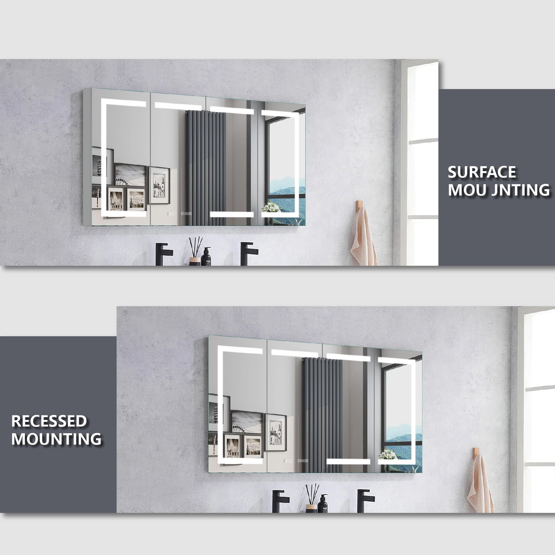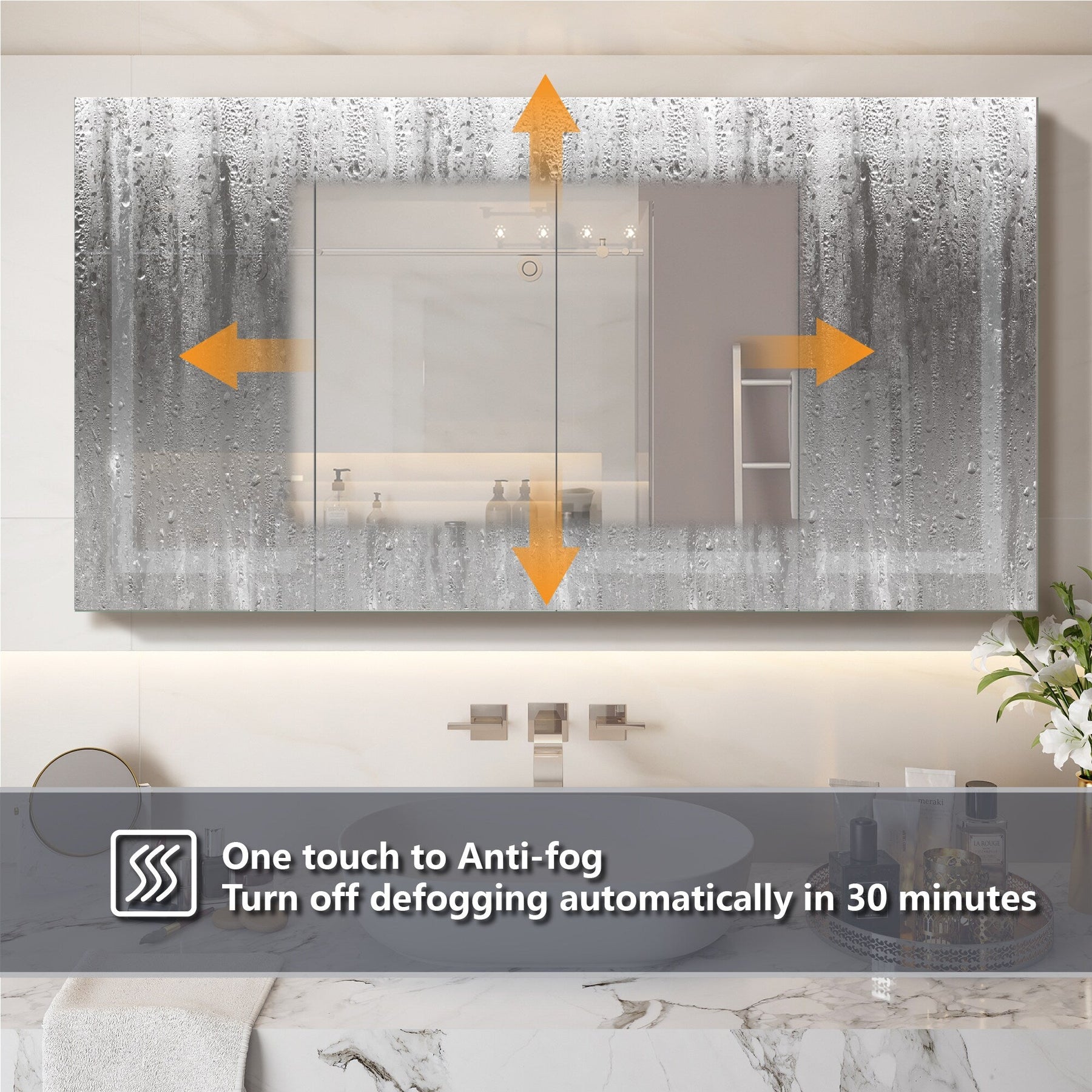 Elevate your bathroom with the WELLFOR 60-Inch LED Medicine Cabinet. Designed for both surface and recessed mounting, this cabinet combines modern aesthetics with superior functionality, featuring a fog-free, mirrored design with dimmable LED lights and integrated power outlets, perfect for any contemporary space.