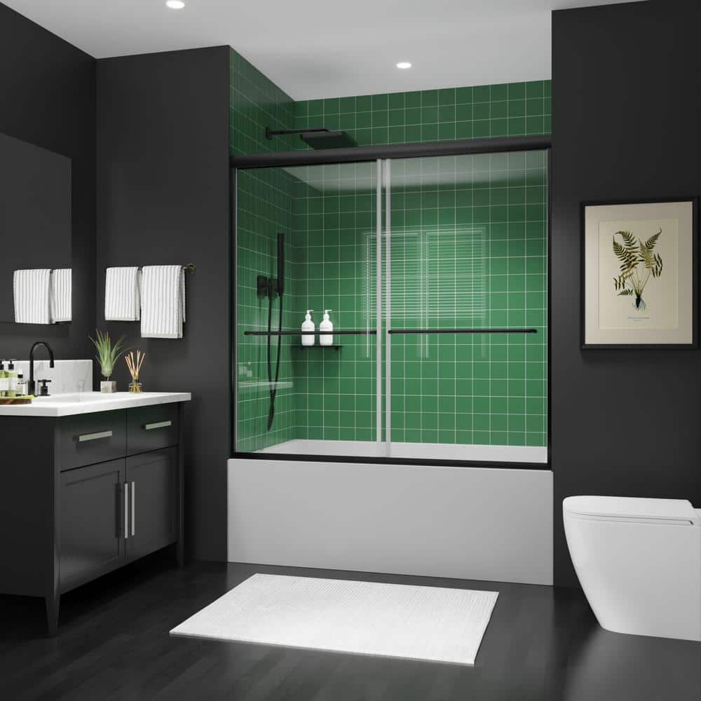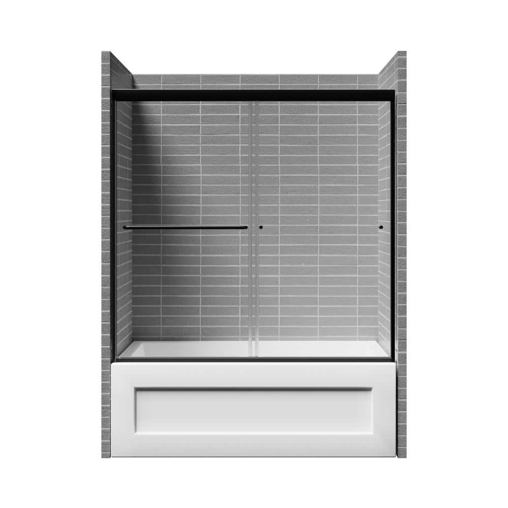 Wynnt 56-60 in. W x 58 in. H Semi Frameless Sliding Bathtub Shower Door in Black with 1/4 in. (6mm) Tempered Glass Shower Door
