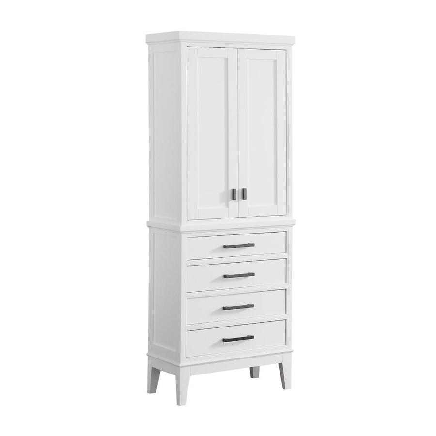 A solid wood-frame linen tower from Avanity’s Madison Collection, offering ample storage in a compact 24-inch footprint. Features soft-close doors and dovetail drawers, adjustable shelves, and black-bronze hardware for a refined, durable addition to any bath.