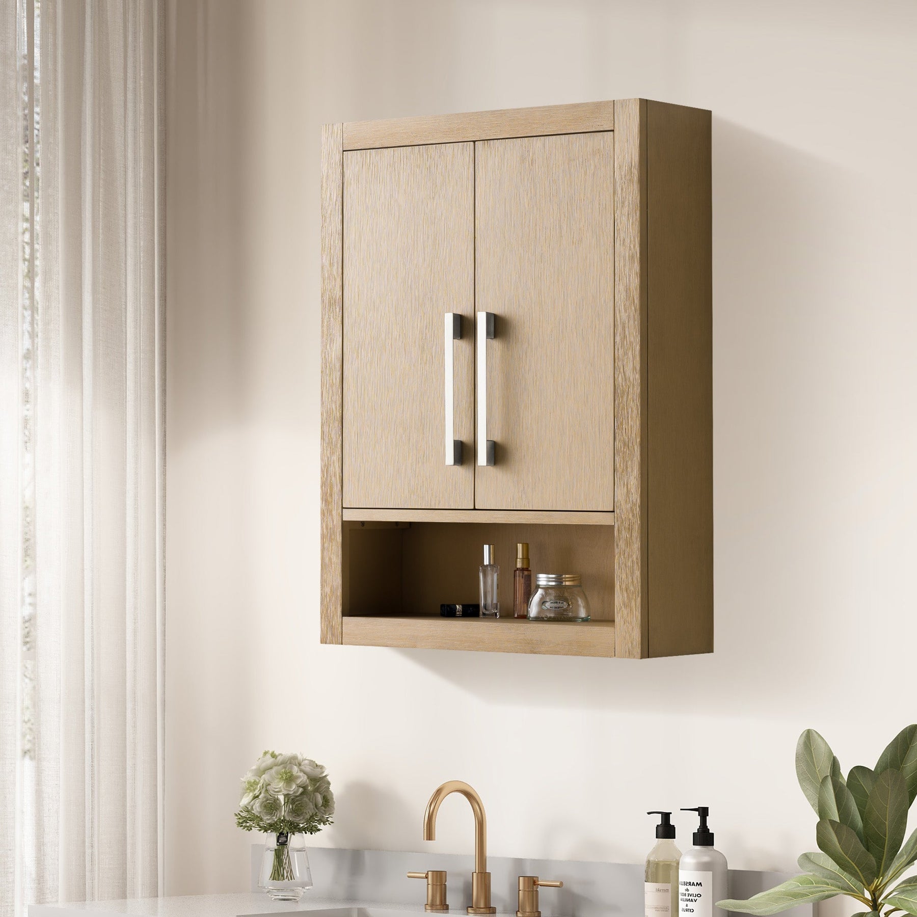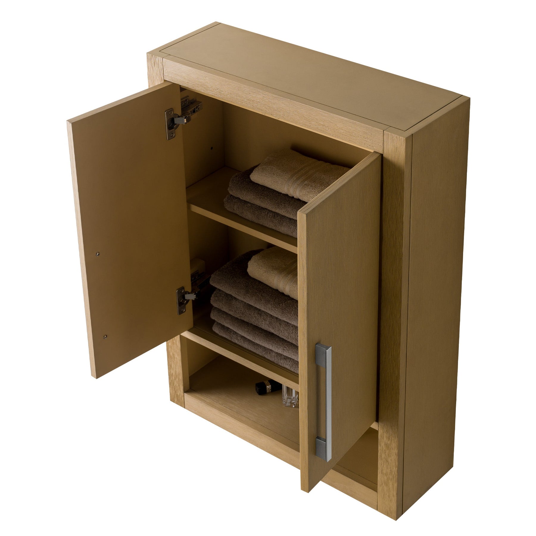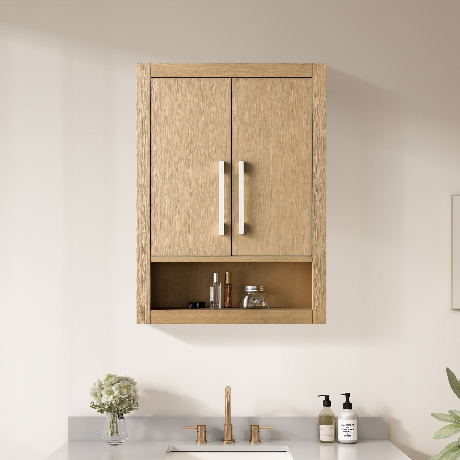 Maximize vertical storage with this wall-mounted bathroom cabinet by Vanity Art. Crafted from durable MDF with a Natural Oak finish, it features two soft-close doors, adjustable shelving, and an open cubby for everyday essentials. Compact yet capacious, it frees up floor space while keeping your bath organized and stylish.