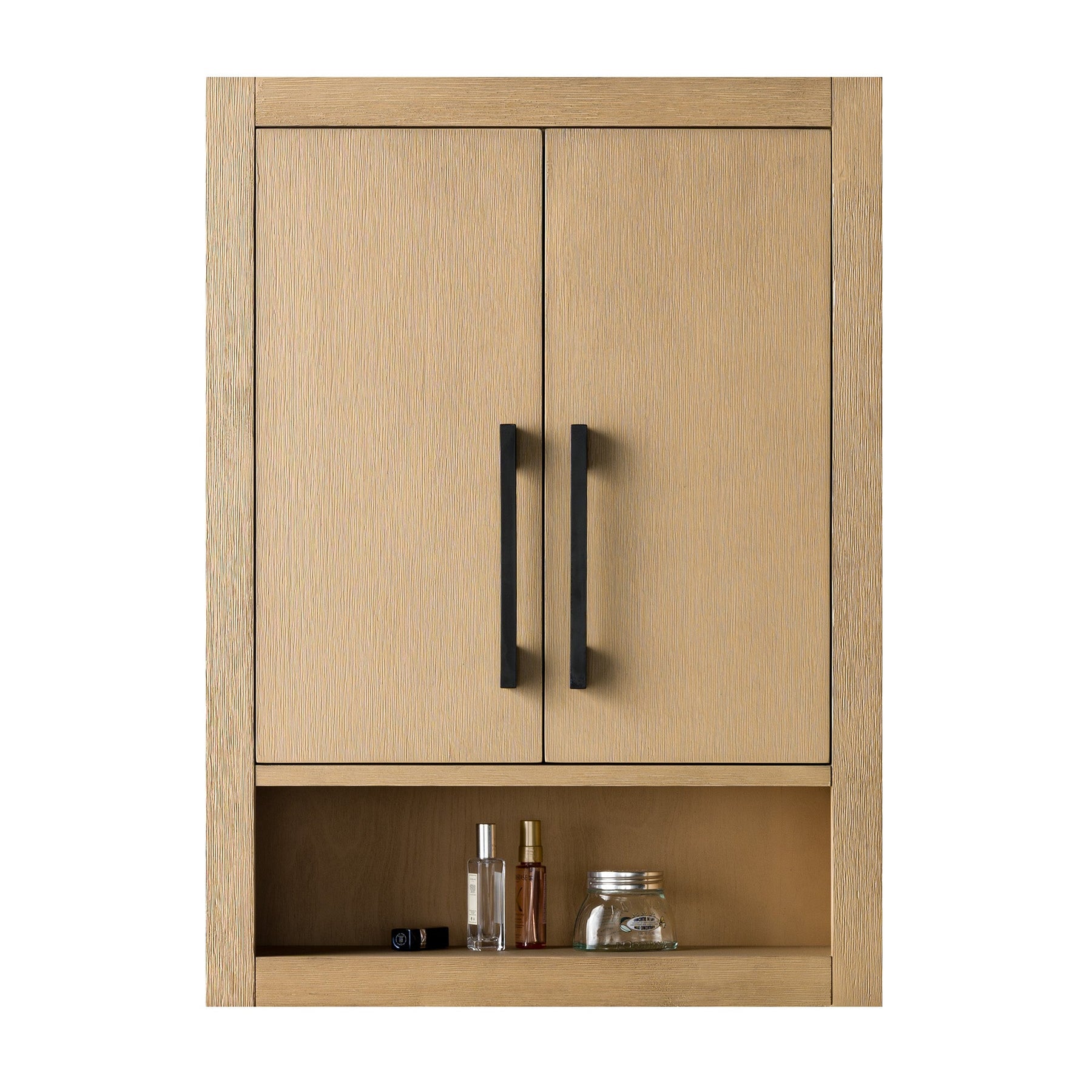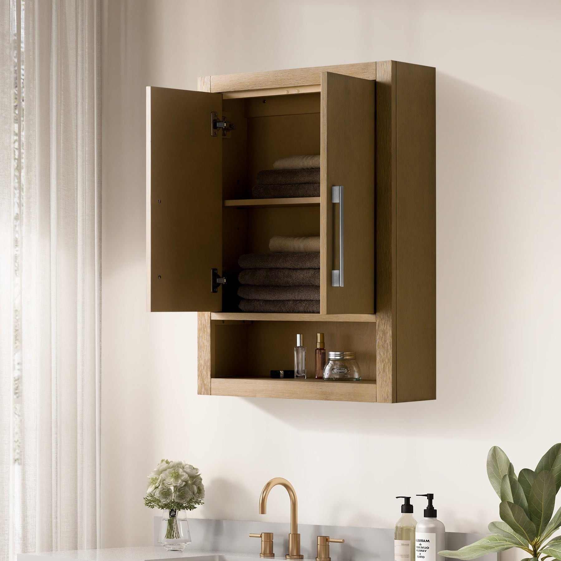 This wall cabinet introduces a refined, organic warmth to the bath—its Natural Oak finish is quietly luxurious. I love the clean double doors punctuated by sleek pulls, framing an open cubby that feels tailored and intentional. Style it with rolled hand towels and a favorite scent to make everyday rituals feel curated. It’s an effortless layer of storage and sophistication, essential for a polished, modern sanctuary.