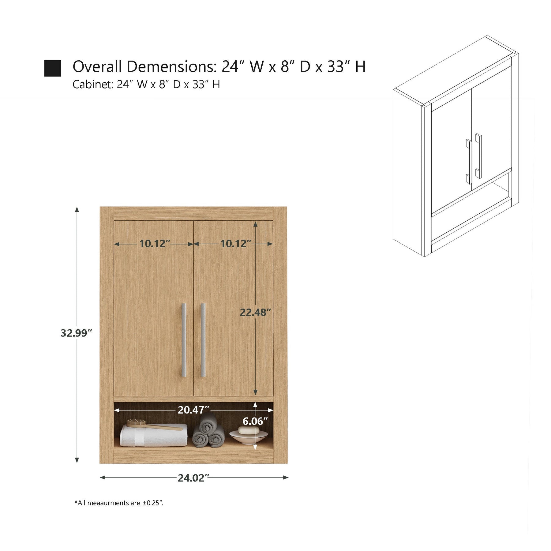24 x 8 x 33 in. Bathroom Wall Storage Cabinet, Natural Oak