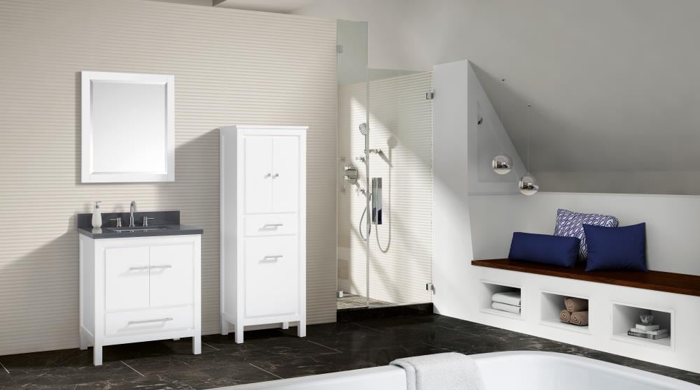 This Avanity vanity top pairs durable gray quartz with a crisp rectangular vitreous china undermount sink for a clean, modern upgrade. Pre-drilled for an 8-in widespread faucet and including a 4-in backsplash, it’s sized to fit 24-in cabinets and built for everyday resilience.