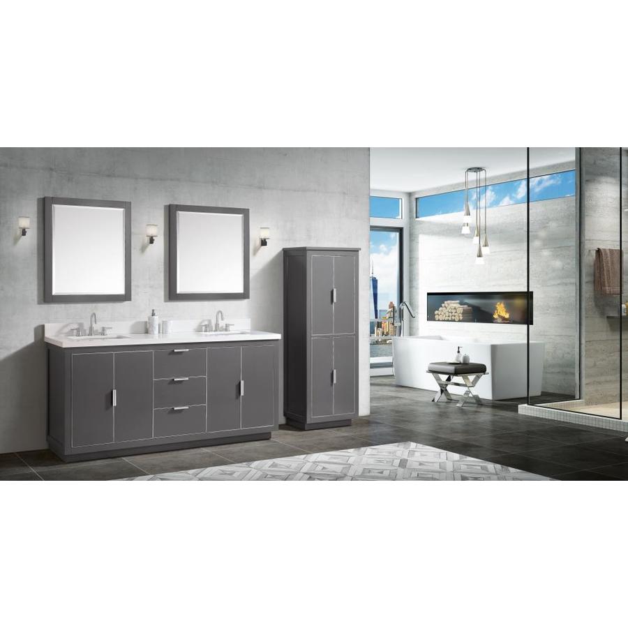 - Durable Quartz Surface: Gray quartz top with 1.5-in laminated edge resists wear and moisture.