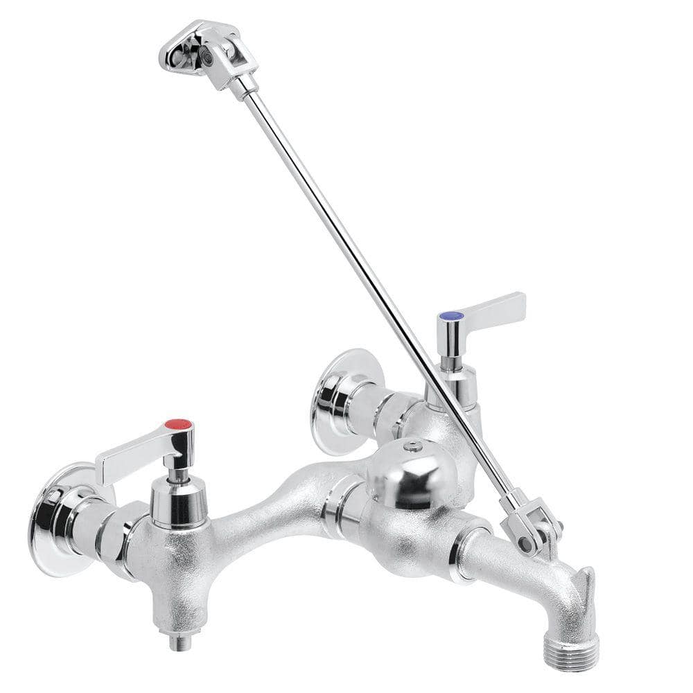 The Speakman Commander Wall Mount 2-Handle Faucet is a staple for any high-functioning utility area, boasting a robust, cast brass construction for long-lasting durability. Finished in rough chrome plating, this industrial-grade faucet is designed for easy installation and dependable performance, perfect for janitorial closets and maintenance sinks.