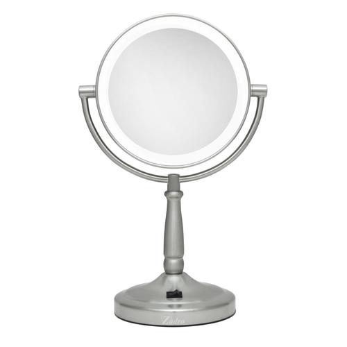Zadro Next Generation; LED Lighted 5.5-in x 14-in Satin Nickel Double-Sided Magnifying Countertop Vanity Mirror with Light
