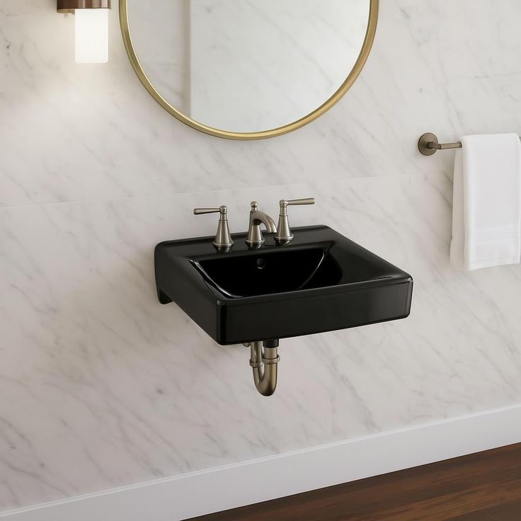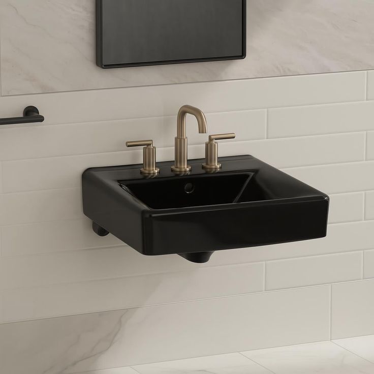 The KOHLER Soho Wall-Mount Bathroom Sink is a masterpiece of modern design, blending functionality with aesthetic appeal. Its sleek black finish and rectangular shape create a bold statement, perfect for contemporary spaces. Pair it with minimalist fixtures to enhance its clean lines, or use it as a striking contrast in a transitional decor. This sink is not just a utility; it's a centerpiece that transforms your bathroom into a sanctuary of style.