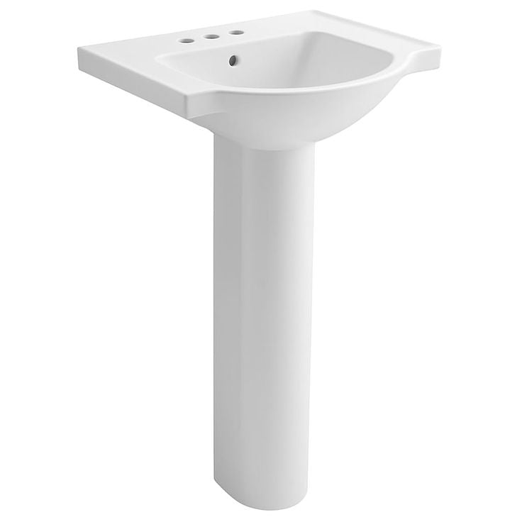 KOHLER Veer 24 in. Vitreous China Pedestal Combo Bathroom Sink in White with Overflow Drain