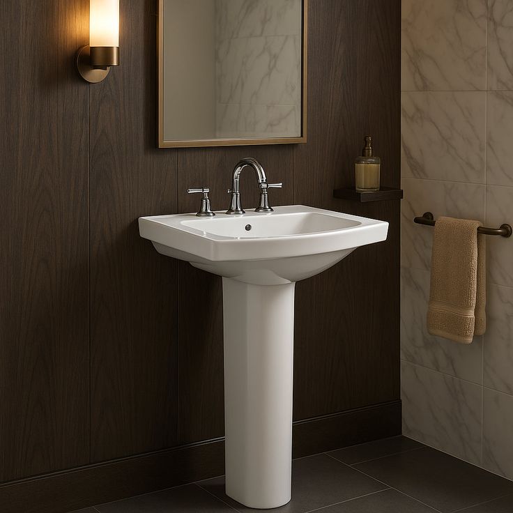 Upgrade your bathroom with the KOHLER Veer pedestal sink, combining style and functionality.