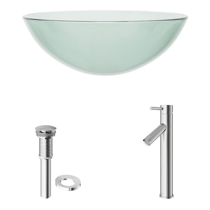 Clearly see your way to a bounty of possibilities with the VIGO Crystalline Glass Vessel Sink and Dior Vessel Faucet Set. The translucent sink suggests a subtle blue hue to reflect that of natural water. Made of solid tempered glass, the sink is both durable and resilient. The sink's brilliance is further enhanced when paired with the sleek and stylish Dior Vessel Faucet. A matching pop-up drain that installs directly inside the sink completes this simply beautiful set.