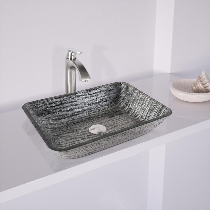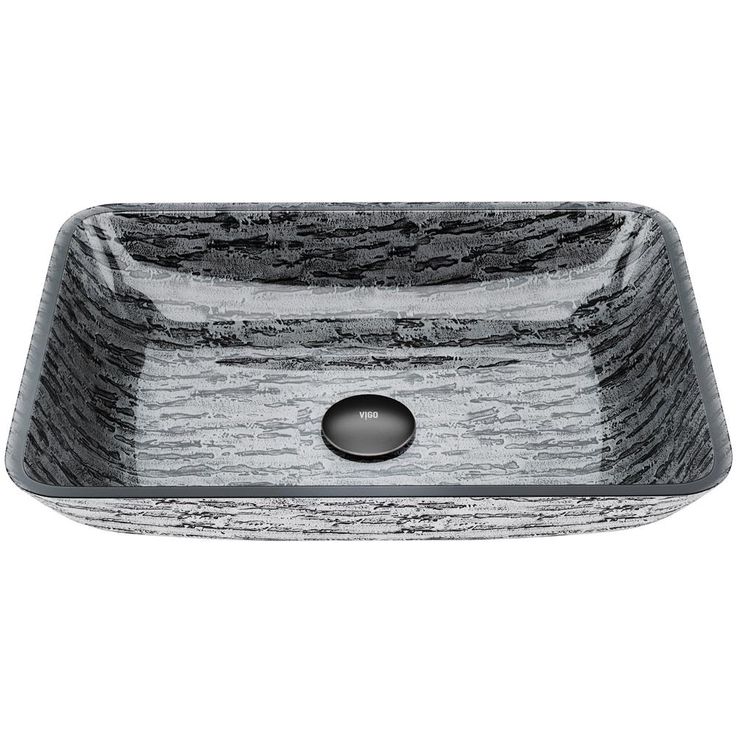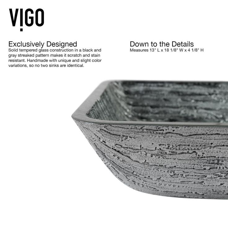 Handcrafted from durable tempered glass, the VIGO Rectangular Titanium Glass Vessel Bathroom Sink is ideal for everyday use. The polished interior and textured exterior are stain-resistant and easy to clean. The sleek angular shape makes this bathroom sink unique, while its organic pattern of silver and black lines add a real "wow" factor to make this sink a perfect addition to any modern bathroom.