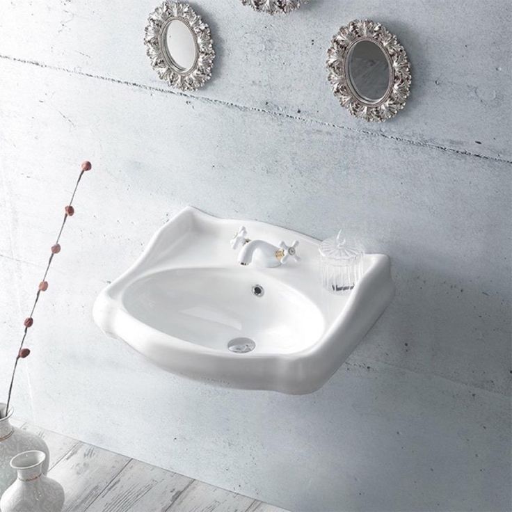 Traditional 24 in. W wall mounted bathroom sink. Available in 1 faucet hole option, this sink is perfect for modern bathrooms. Sink is made of ceramic and includes an overflow. Made and designed by high-end and well known Turkish brand CeraStyle.