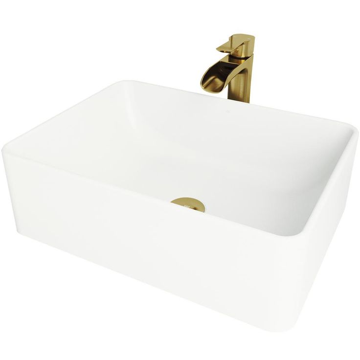 The VIGO Amaryllis Matte Stone Bathroom Vessel Sink with the Niko Bathroom Vessel Faucet Set shows quality construction and beautiful design in one impeccable pairing. The softened rectangular sink is made from VIGOs proprietary Matte Stone composite, an incredibly durable and strong material. This composite is engineered to be scratch, stain, and chip resistant. Its hand polished detailing reflects acute attention to detail. The Amaryllis partner, the VIGO Niko Vessel Bathroom Faucet, is a single-handle model outfitted in a fresh matte brushed gold finish. It has 7 layers of premium finish to expertly resist rust, corrosion, and tarnish. With exceptional hardware and a matching finish pop-up drain, this set is sure to impress all.