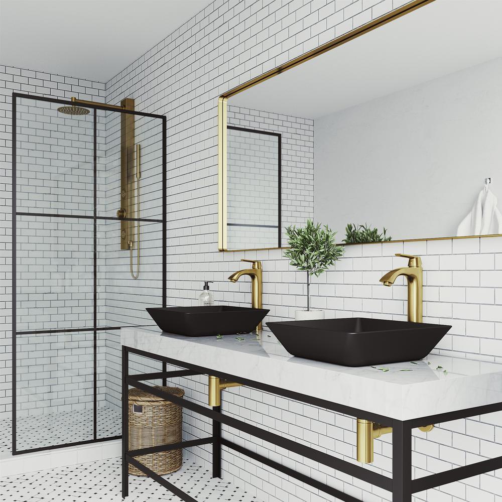 From deliberate design and high-end construction comes the VIGO Black Serato Matte Shell Bathroom Sink Set. Innovative and intense, Matte Shell sinks bring the same excellence of classic solid tempered glass and take the construction to the next level. The Black Serato is deeply opaque and has an eggshell-like sheen that is rich yet subtle. Its deep ebony shade is infused into the sink itself, eliminating the risk of a chipped finish. It has a unique coating to prevent fingerprints and marks, leaving it pristine for years of use. This sink has a distinctive square, tapered shape that brings modernity into any bathroom. It is paired with the VIGO Linus, single-hole, vessel mount bathroom faucet. This easy-to-use faucet is tall without overpowering your space. It has exceptional hardware and is outfitted in a pristine matte brushed gold finish that resists rust, corrosion and tarnish. The set is made complete with a matching pop-up drain without overflow. Experience the synergy of character and style with this all-in-one bathroom set.
